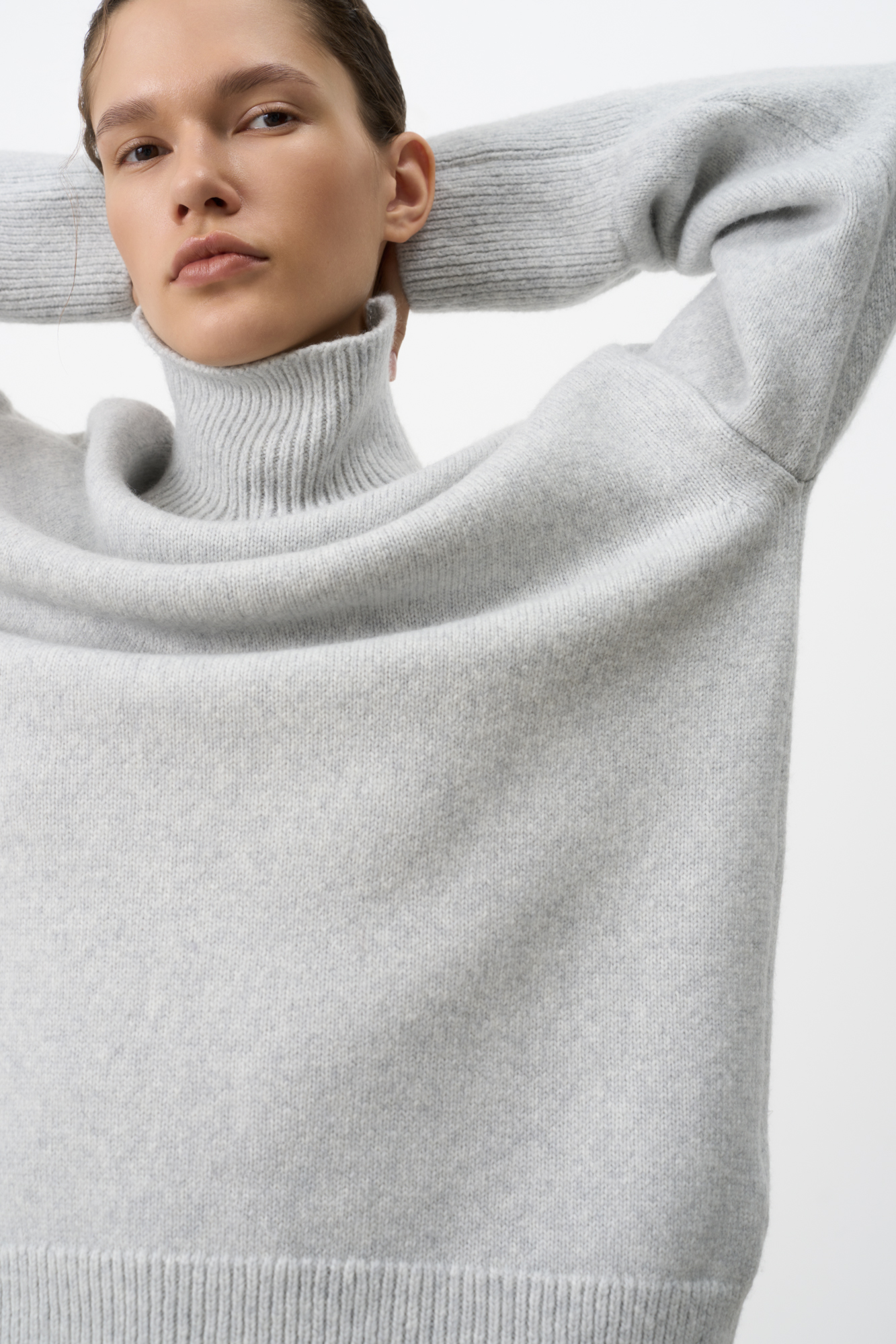 Джемпер из тончайшей мериносовой шерсти. Можно носить с обеих сторон. Возле воротника вывязана буква "B".