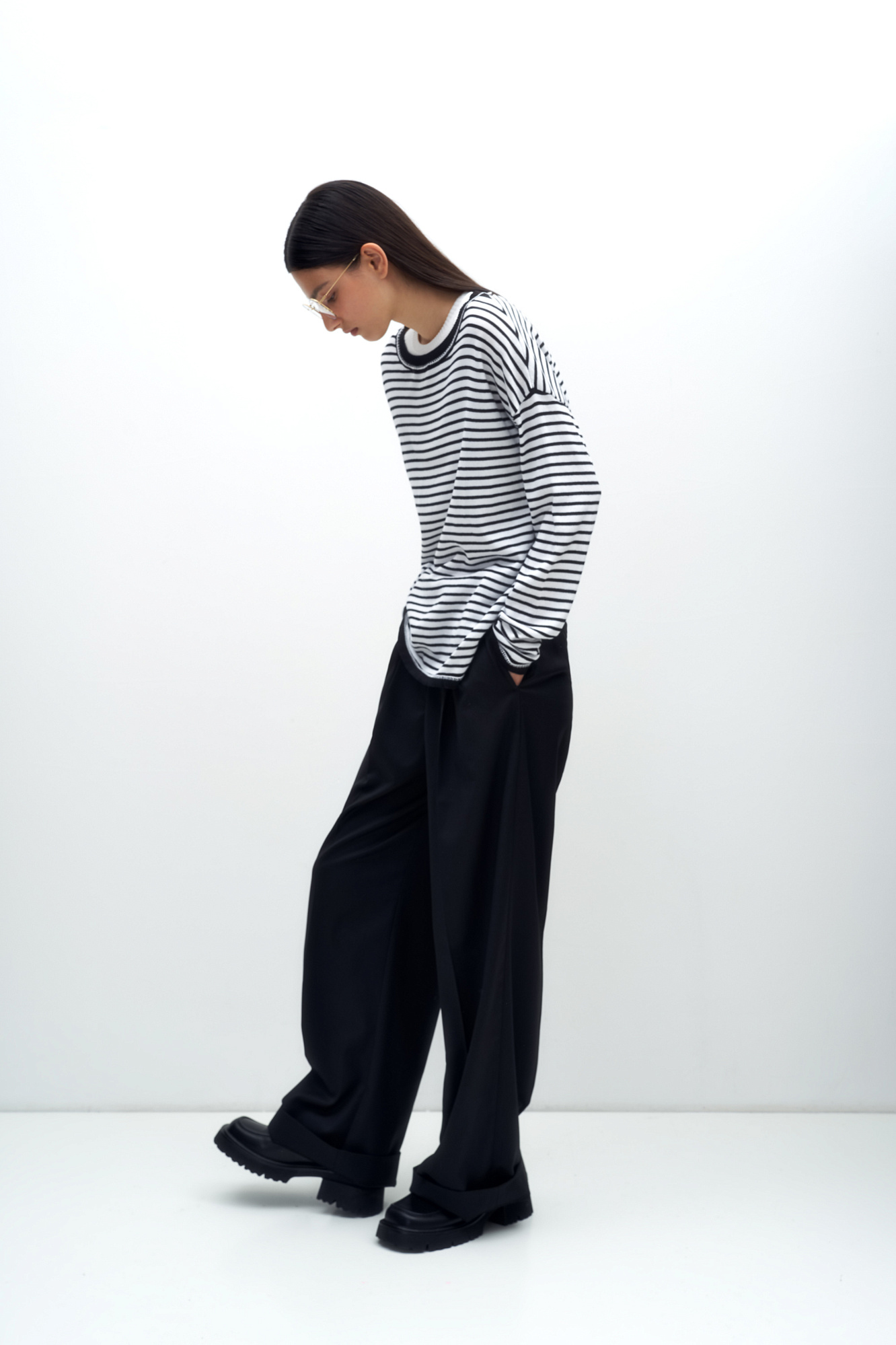 Трикотажный лонгслив из 100% хлопка. Модель свободного силуэта со спущенной линией плеча и круглым вырезом горловины.