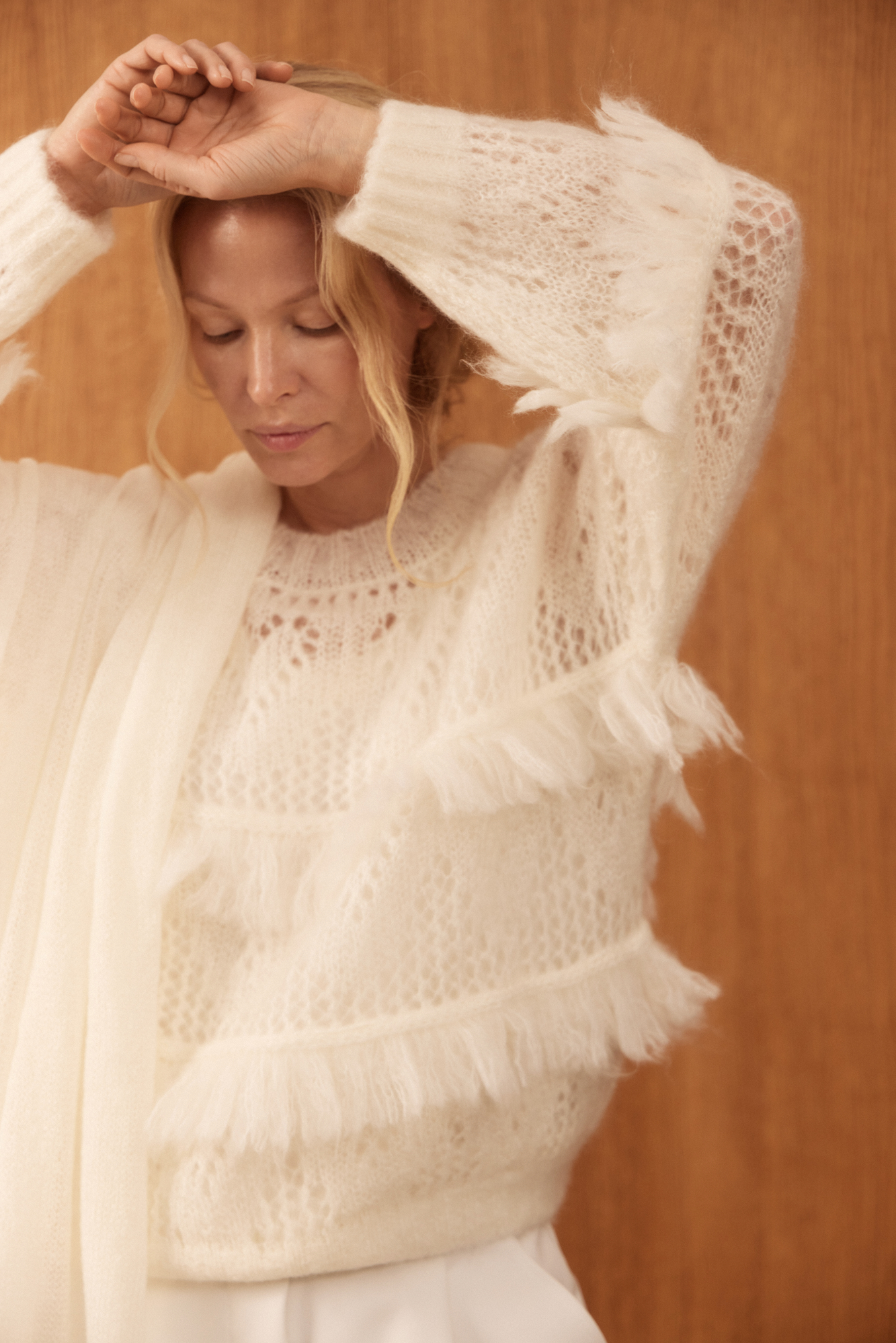Ажурный джемпер с бахромой из кид мохера