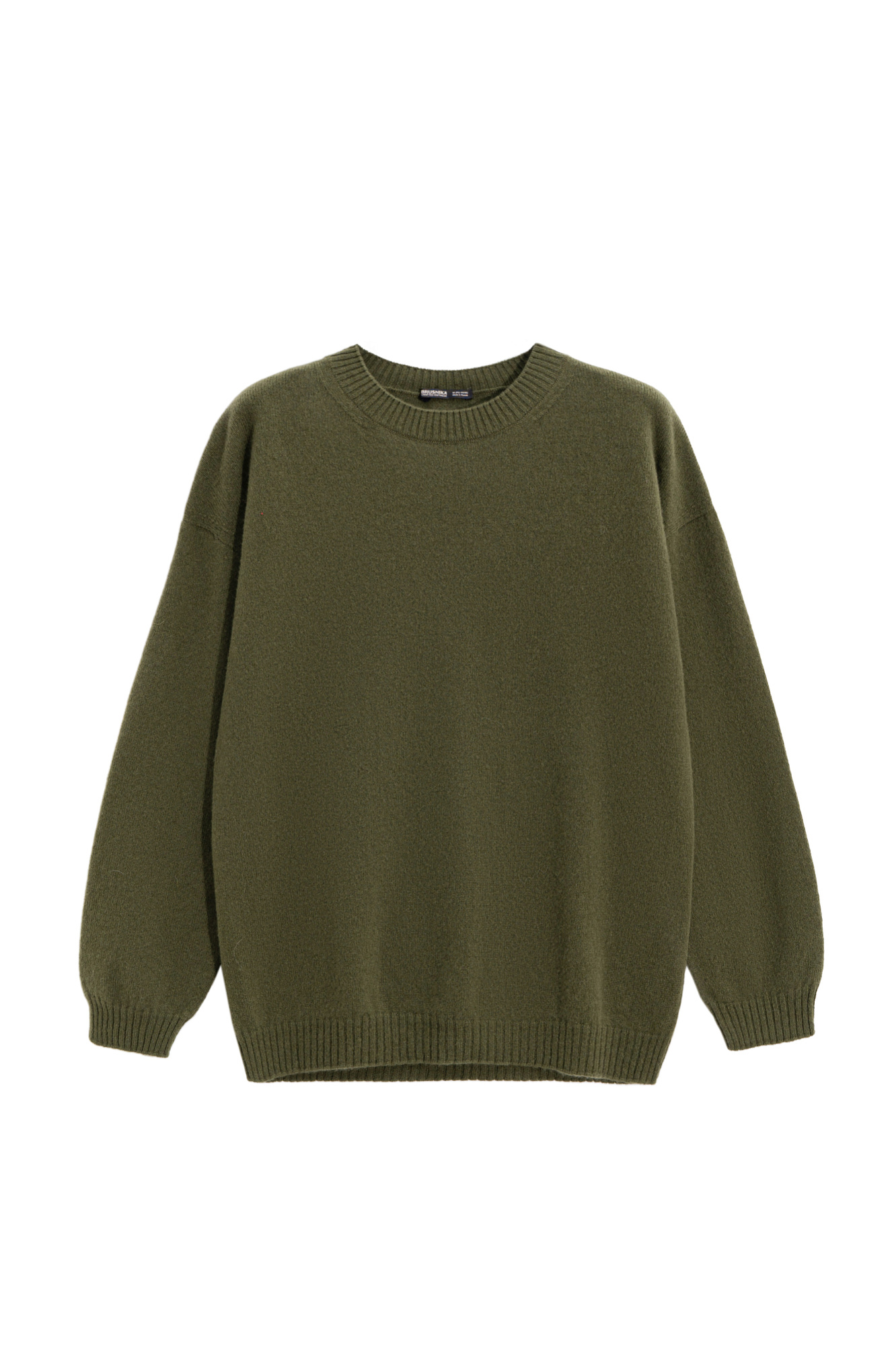 Трикотажный джемпер из 100% кашемира. Модель свободного силуэта со спущенной линией плеча и круглым вырезом горловины. Края изделия выполнены в рубчик.