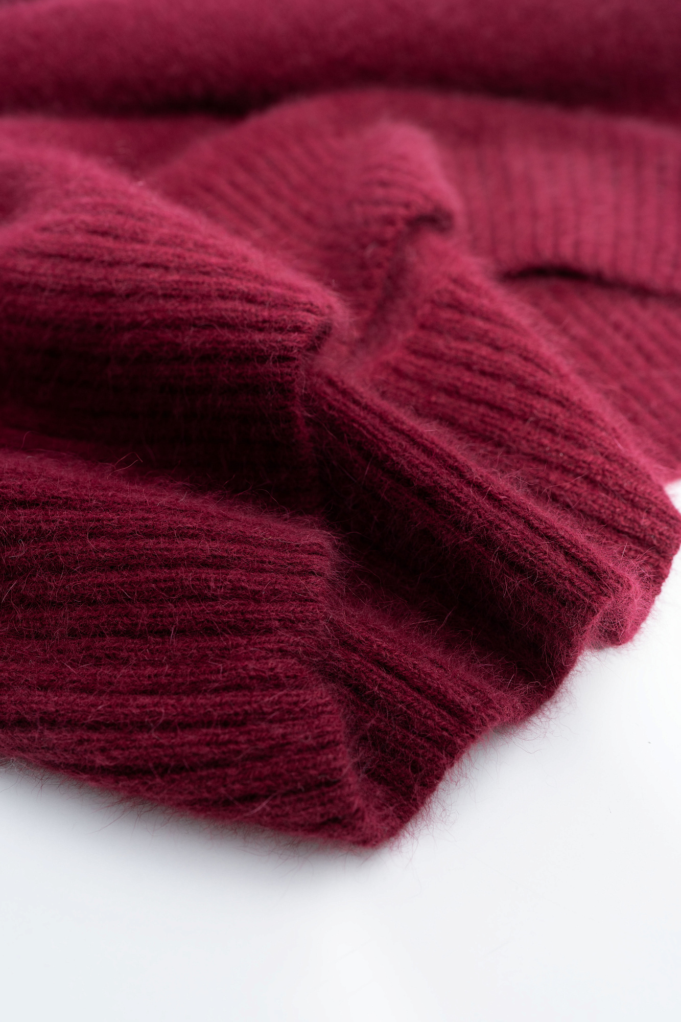 Трикотажный джемпер прямого силуэта. Содержание в пряже 70% натурального пуха лисы делает джемпер теплым и в тоже время очень легким. Модель со спущенным плечом, края изделия в рубчик.