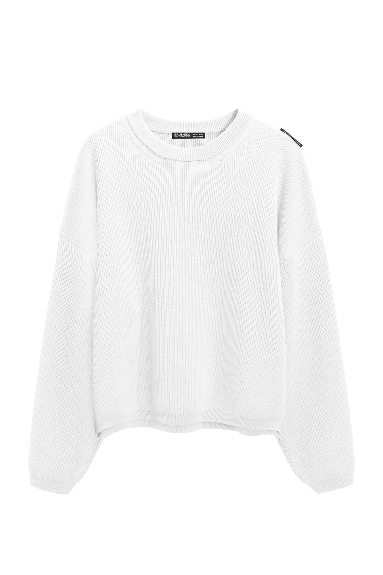 Укороченный трикотажный джемпер из хлопка с добавлением вискозы. Модель свободного кроя со спущенной линией плеч и круглым вырезом горловины.