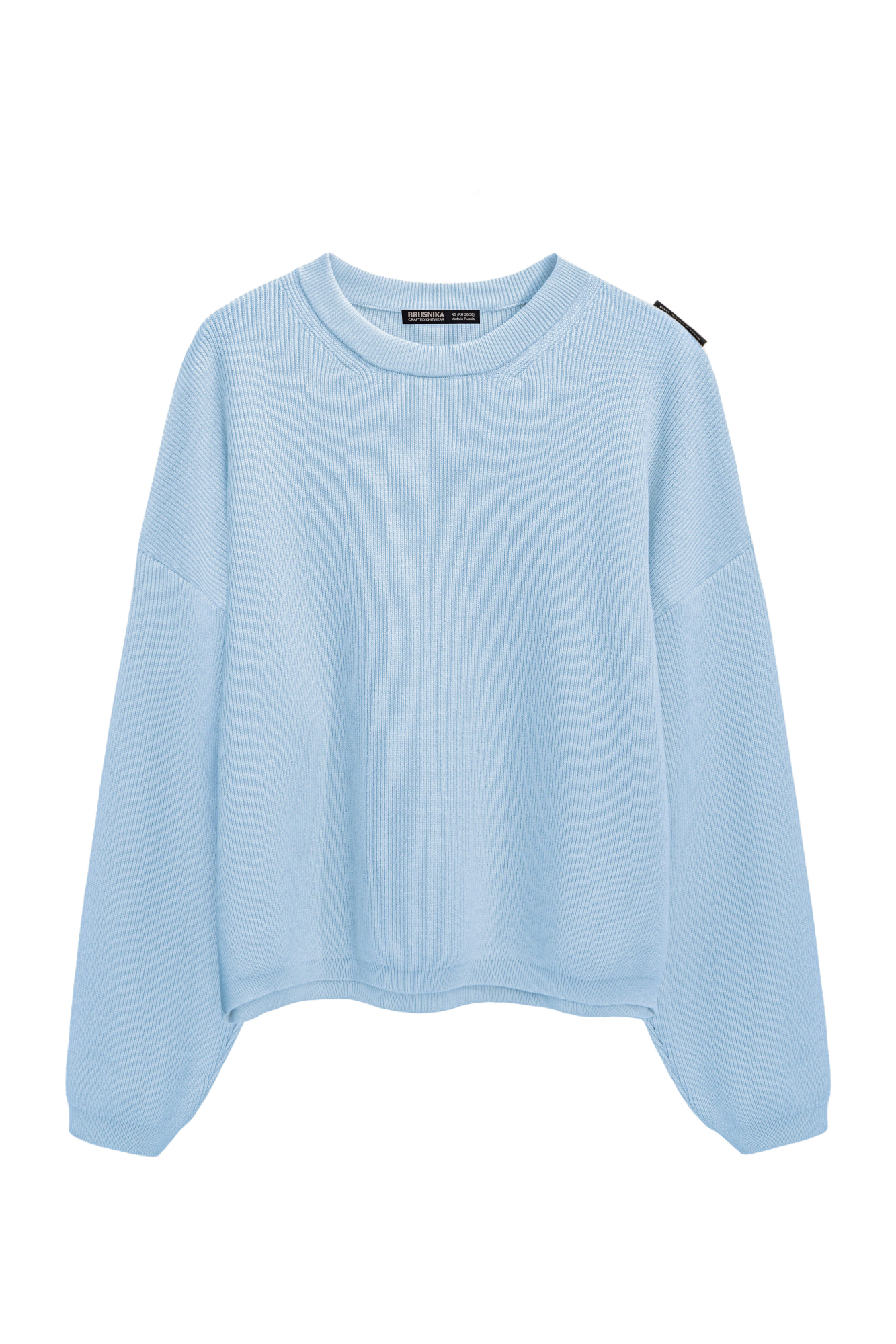 Укороченный трикотажный джемпер из хлопка с добавлением вискозы. Модель свободного кроя со спущенной линией плеч и круглым вырезом горловины.