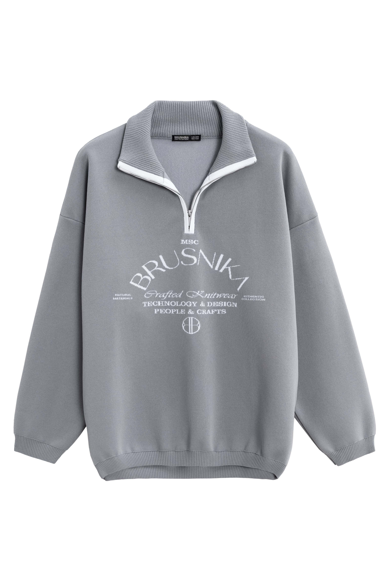 Принтованный джемпер из вискозы. Модель свободного силуэта со спущенной линией плеча и воротником-стойкой, застегивающимся на молнию. Манжеты и низ изделия выполнены в рубчик.