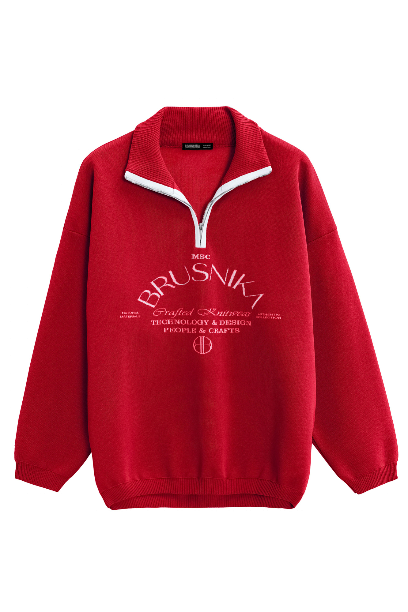 Принтованный джемпер из вискозы. Модель свободного силуэта со спущенной линией плеча и воротником-стойкой, застегивающимся на молнию. Манжеты и низ изделия выполнены в рубчик.