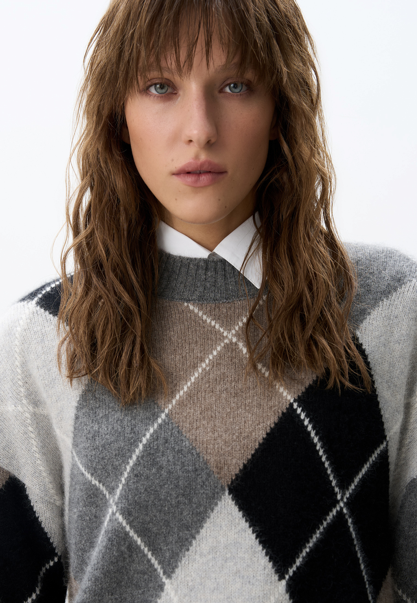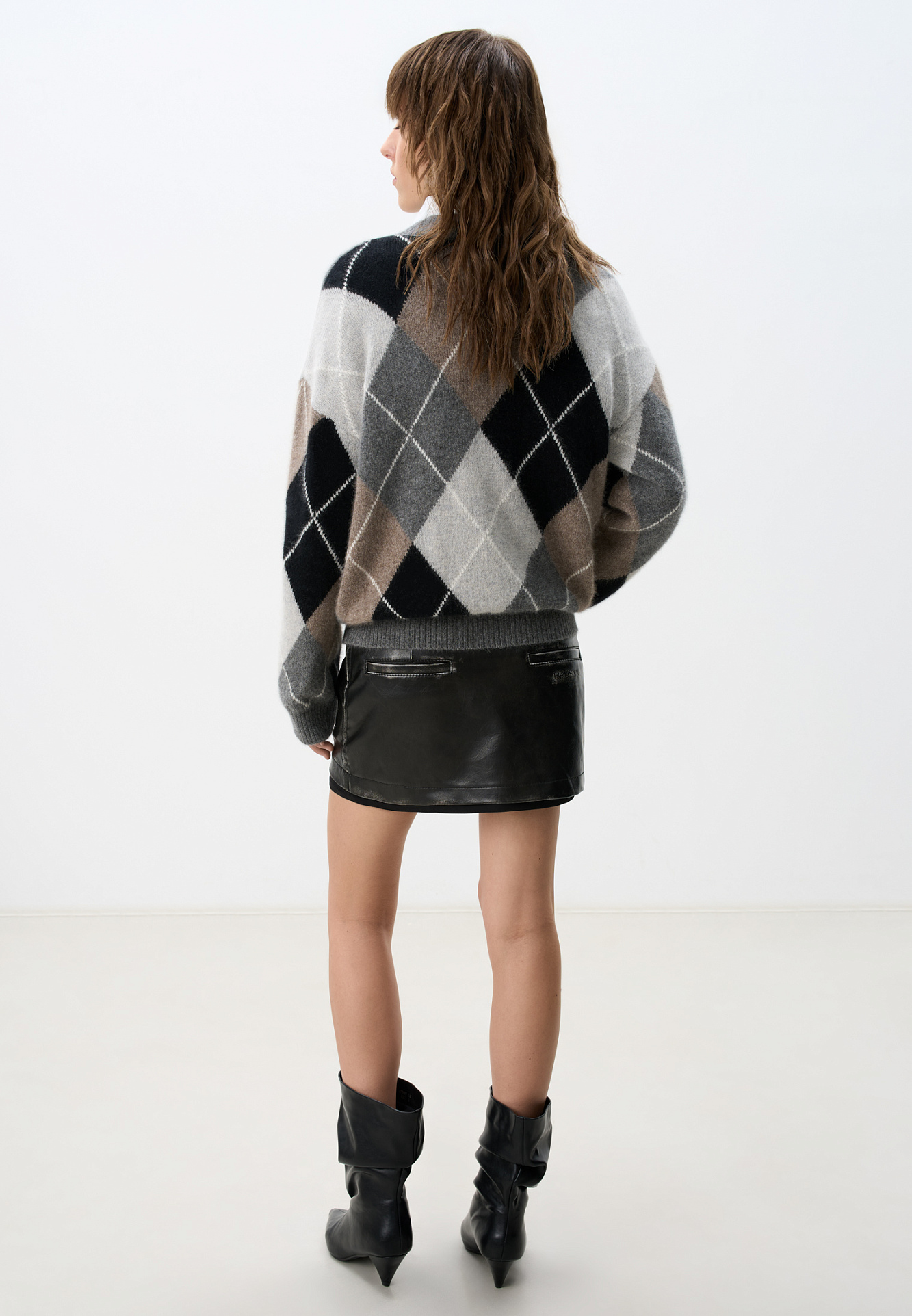 Джемпер из пуха лисы с узором аргайл
