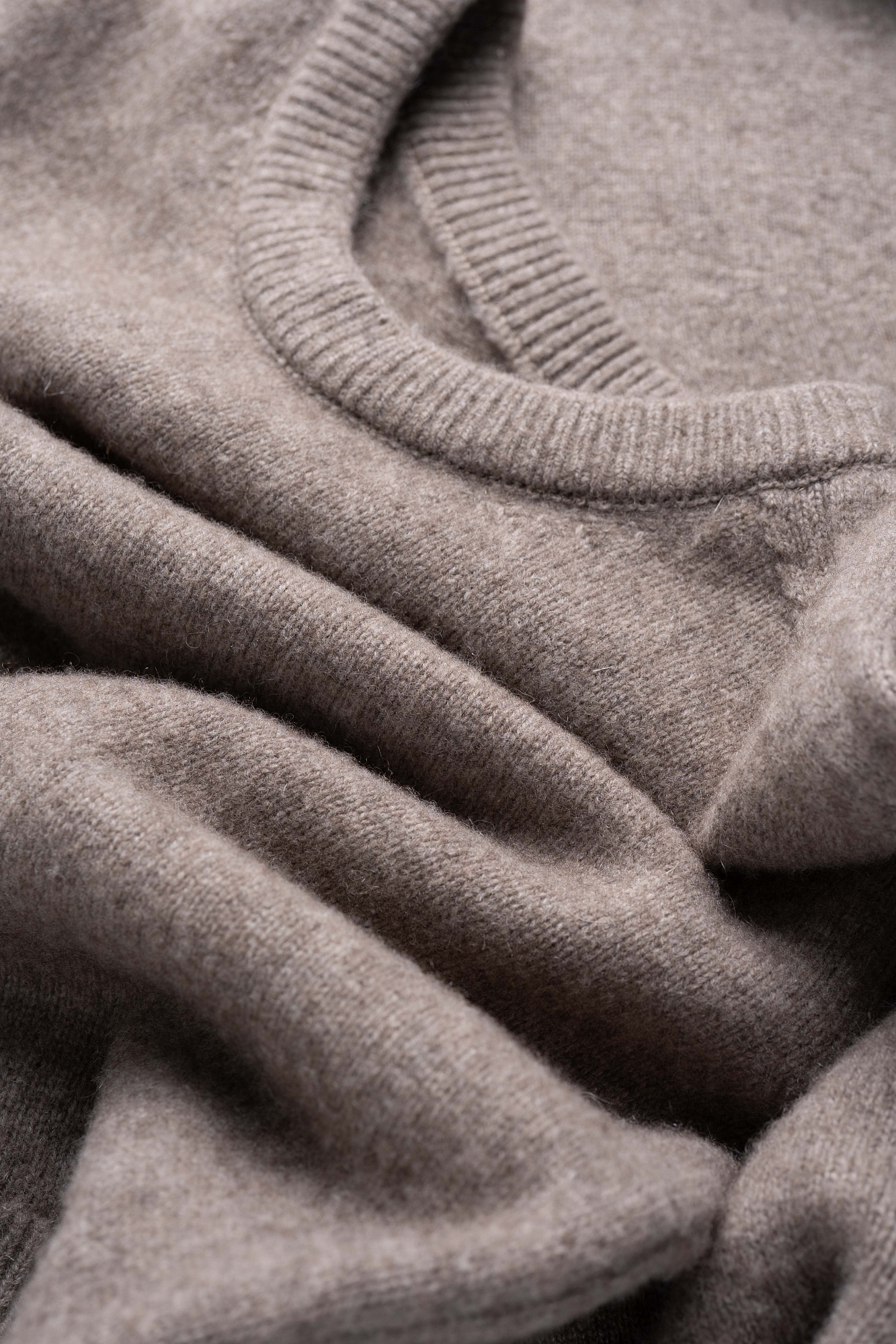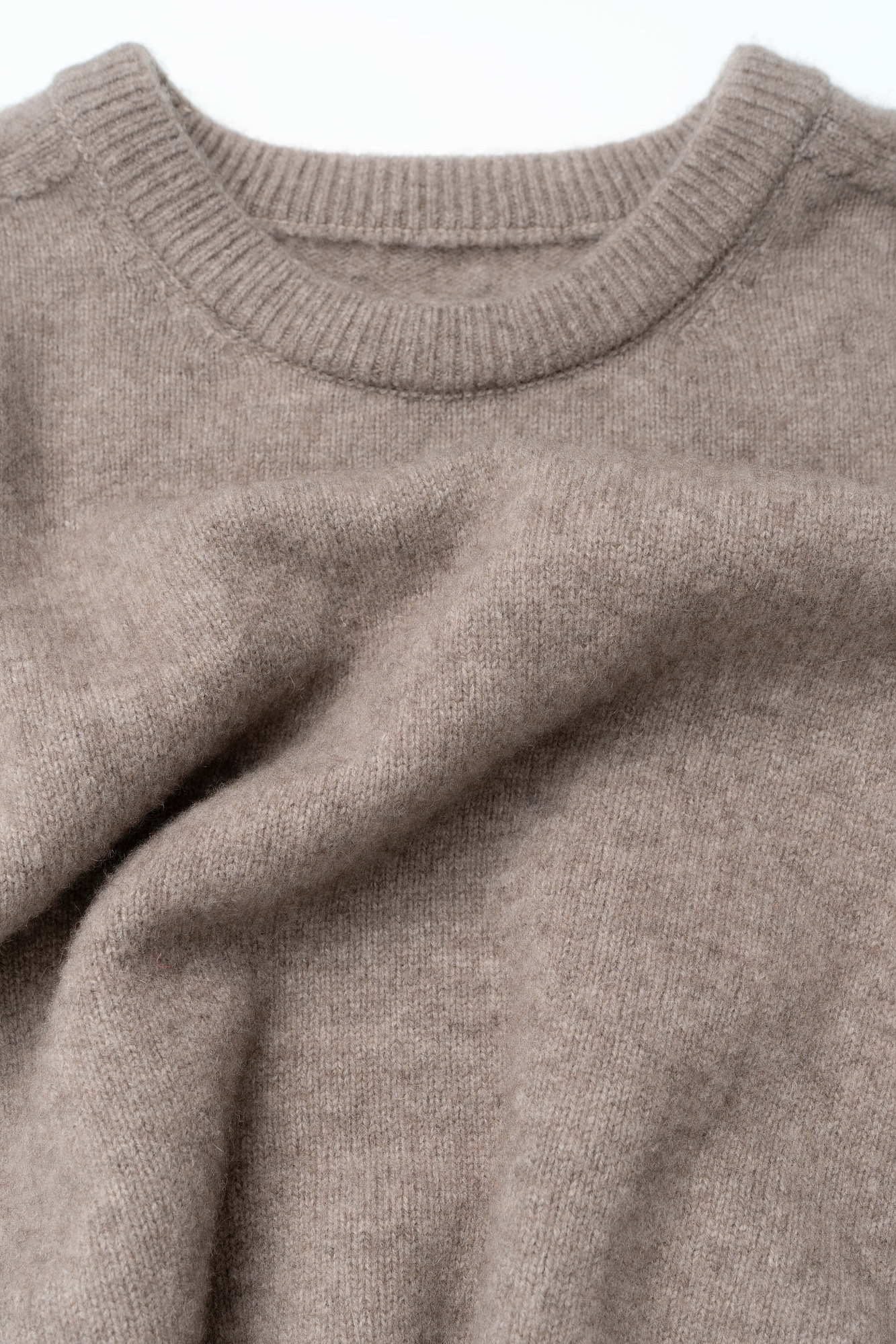 Трикотажный джемпер из шерсти яка с добавлением шерсти мериноса экстрафайн. Модель свободного силуэта, с вывязанной круглой горловиной и рукавом реглан с декоративными сбавками. Низ изделия и манжеты рукавов выполнены в рубчик.
