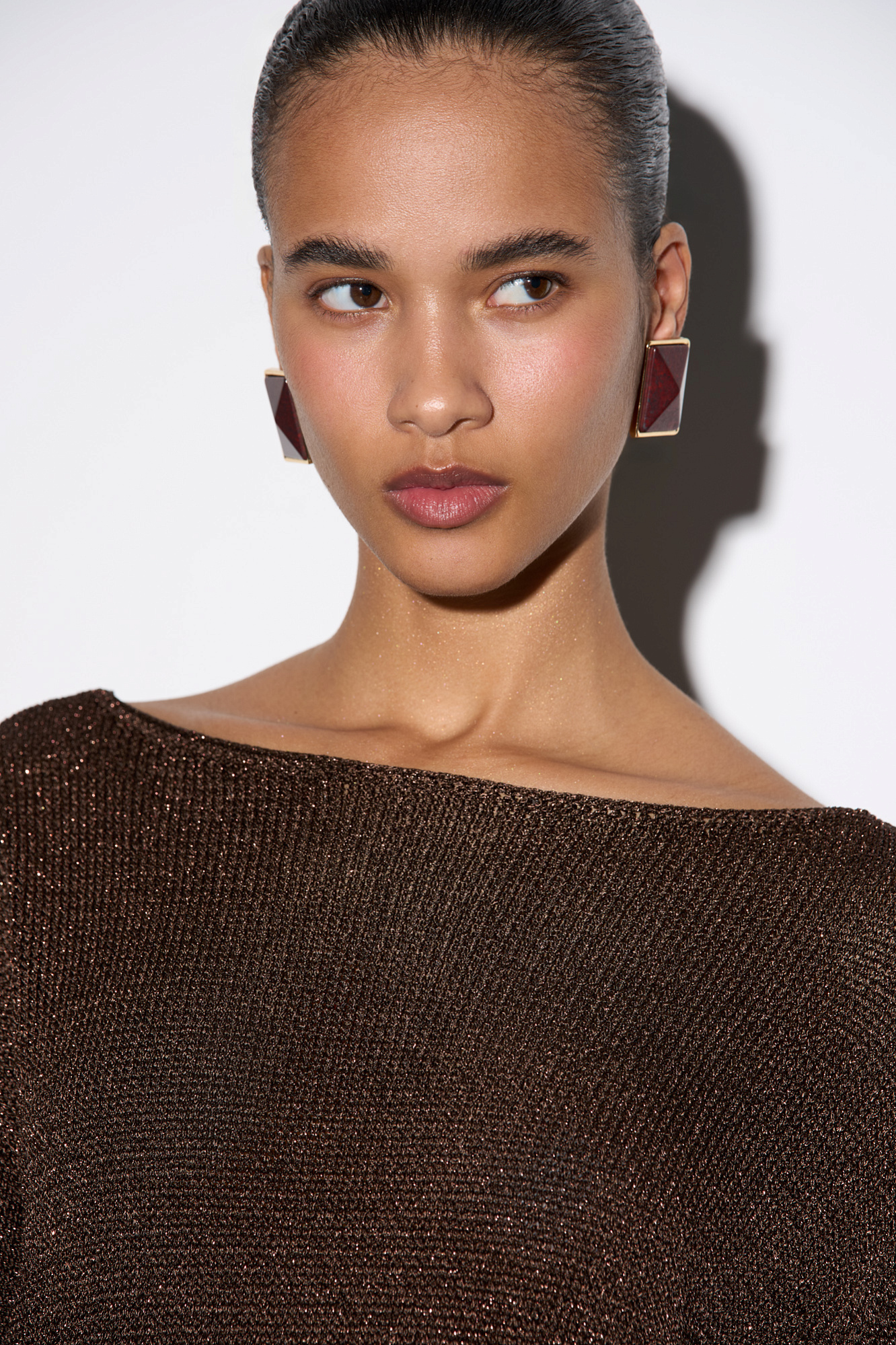 Укороченный мохеровый джемпер с люрексом