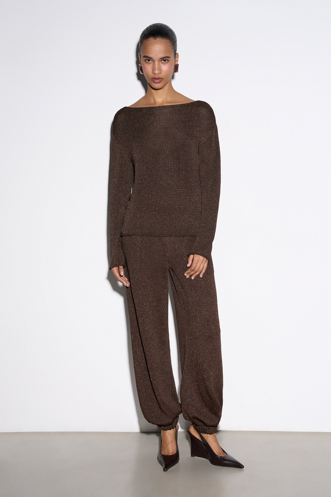 Трикотажные брюки-джоггеры с люрексом