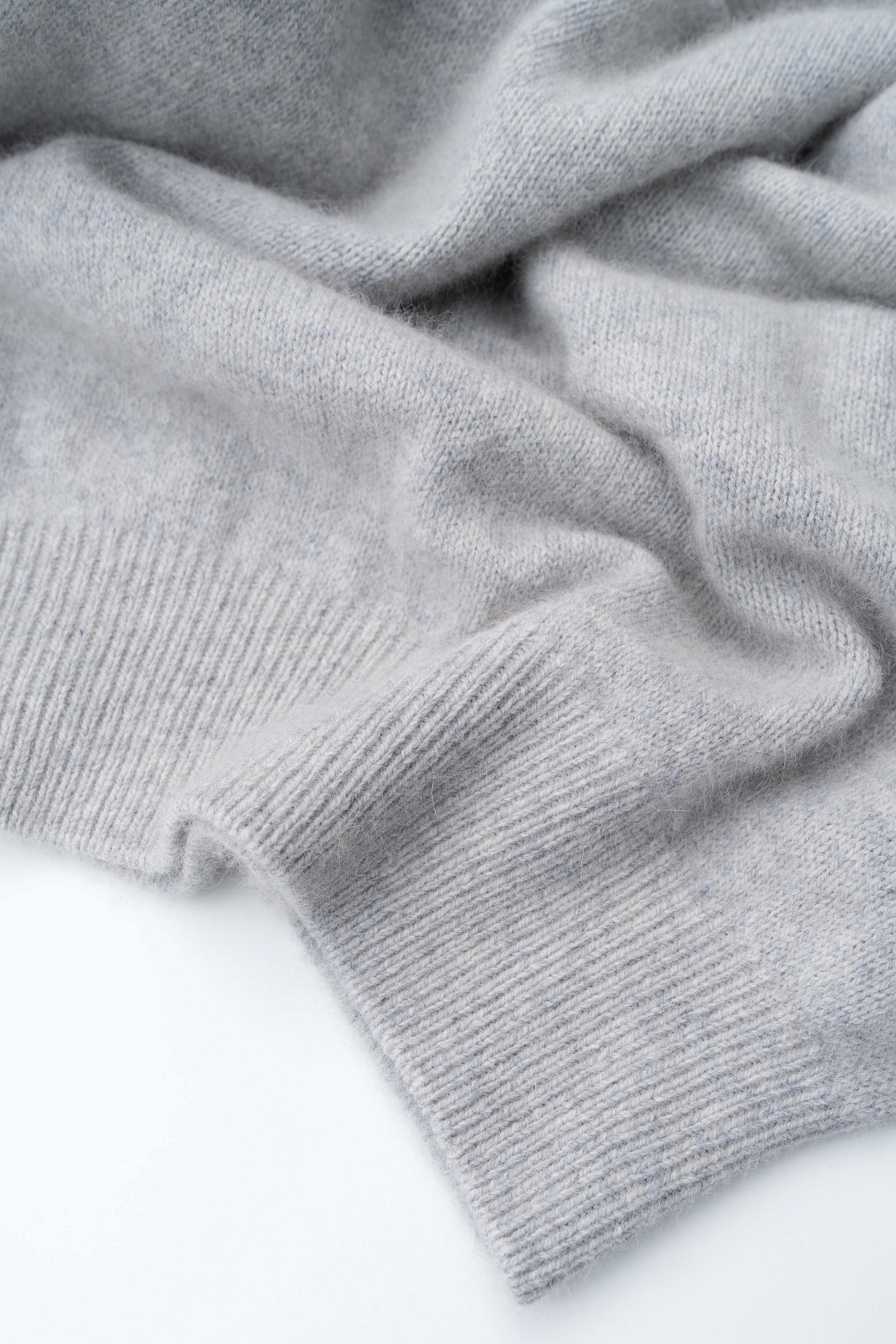 Трикотажный джемпер из пуха лисы. Модель свободного силуэта с высоким воротом, спущенной линией плеч и широкими рукавами с манжетами на резинке.