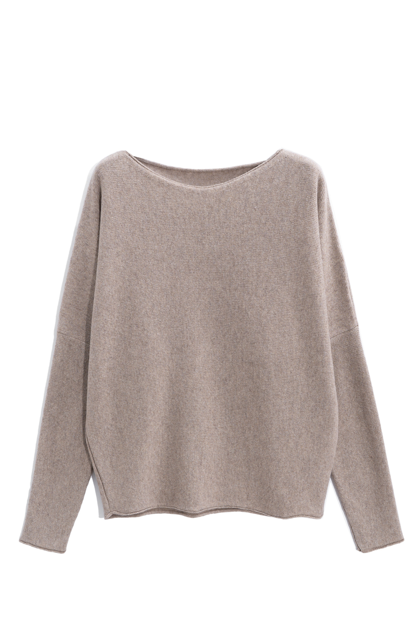 Трикотажный джемпер из кашемира и шерсти. Модель свободного силуэта с рукавом формы "летучая мышь" и горловиной лодочкой.