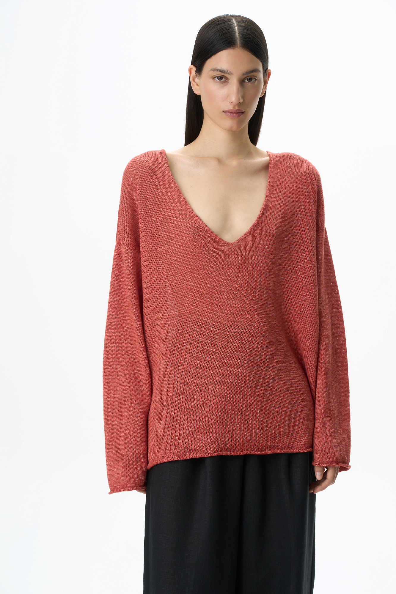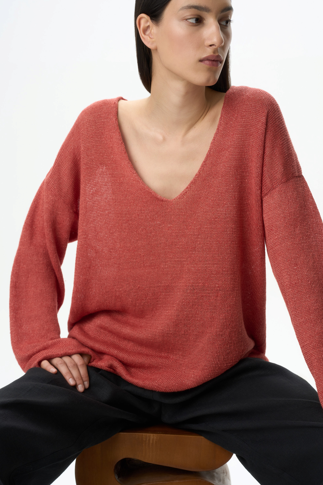 Джемпер с V-образным вырезом из 100% льна