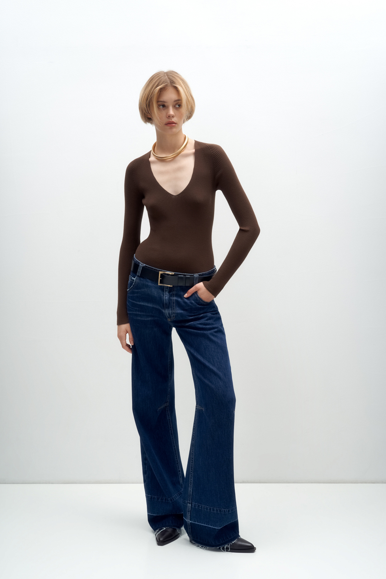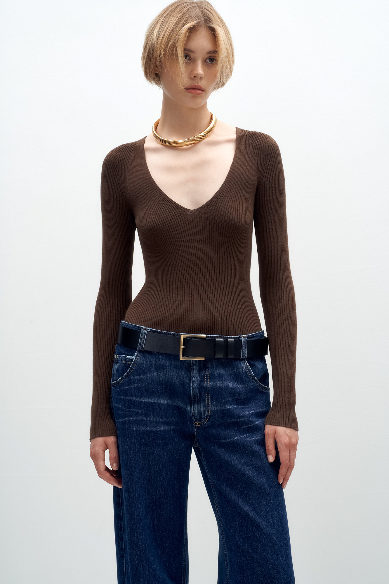 Лонгслив с V-образным вырезом
