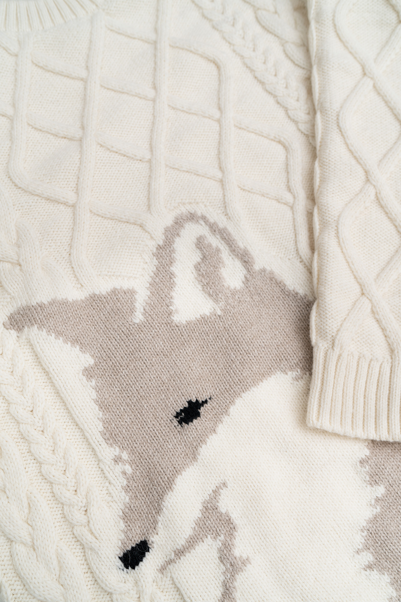 Трикотажный джемпер с жаккардовым рисунком. Модель свободного силуэта со спущенным плечом из шерсти альпака. Края изделия в рубчик.