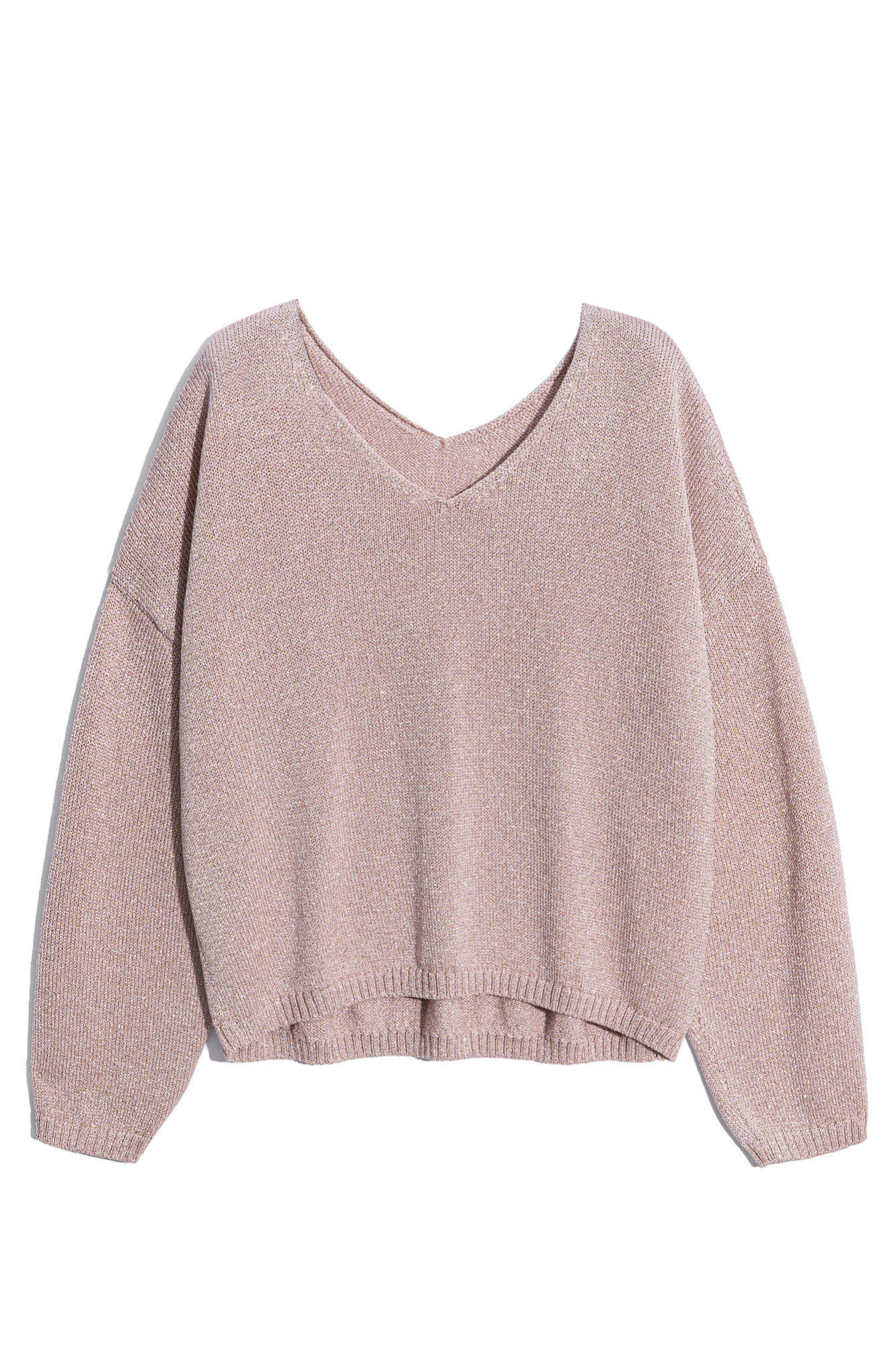 Джемпер из вискозы с люрексом и V-образным вырезом