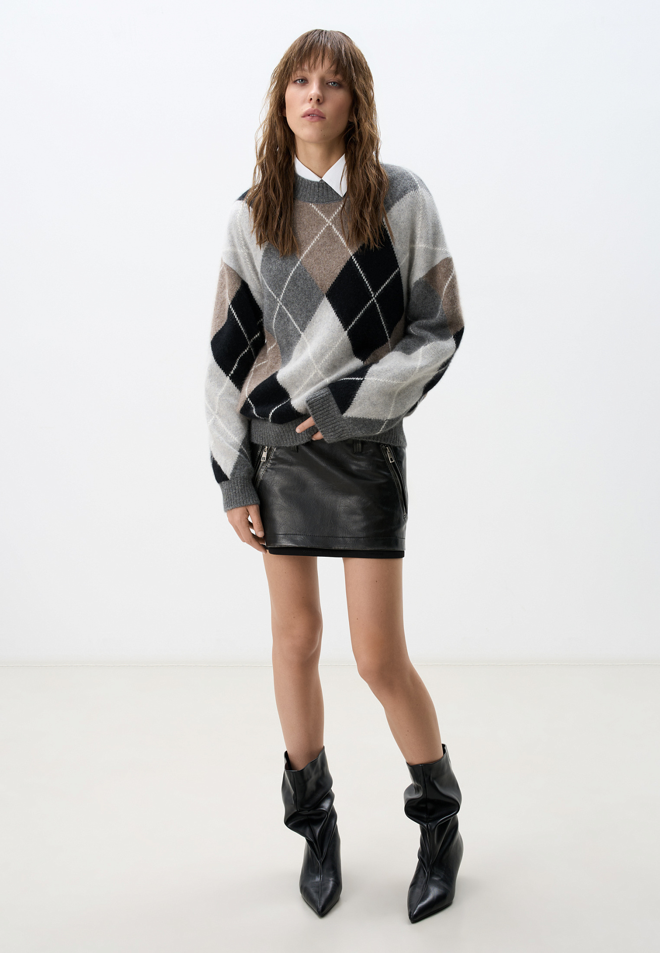 Джемпер из пуха лисы с узором аргайл