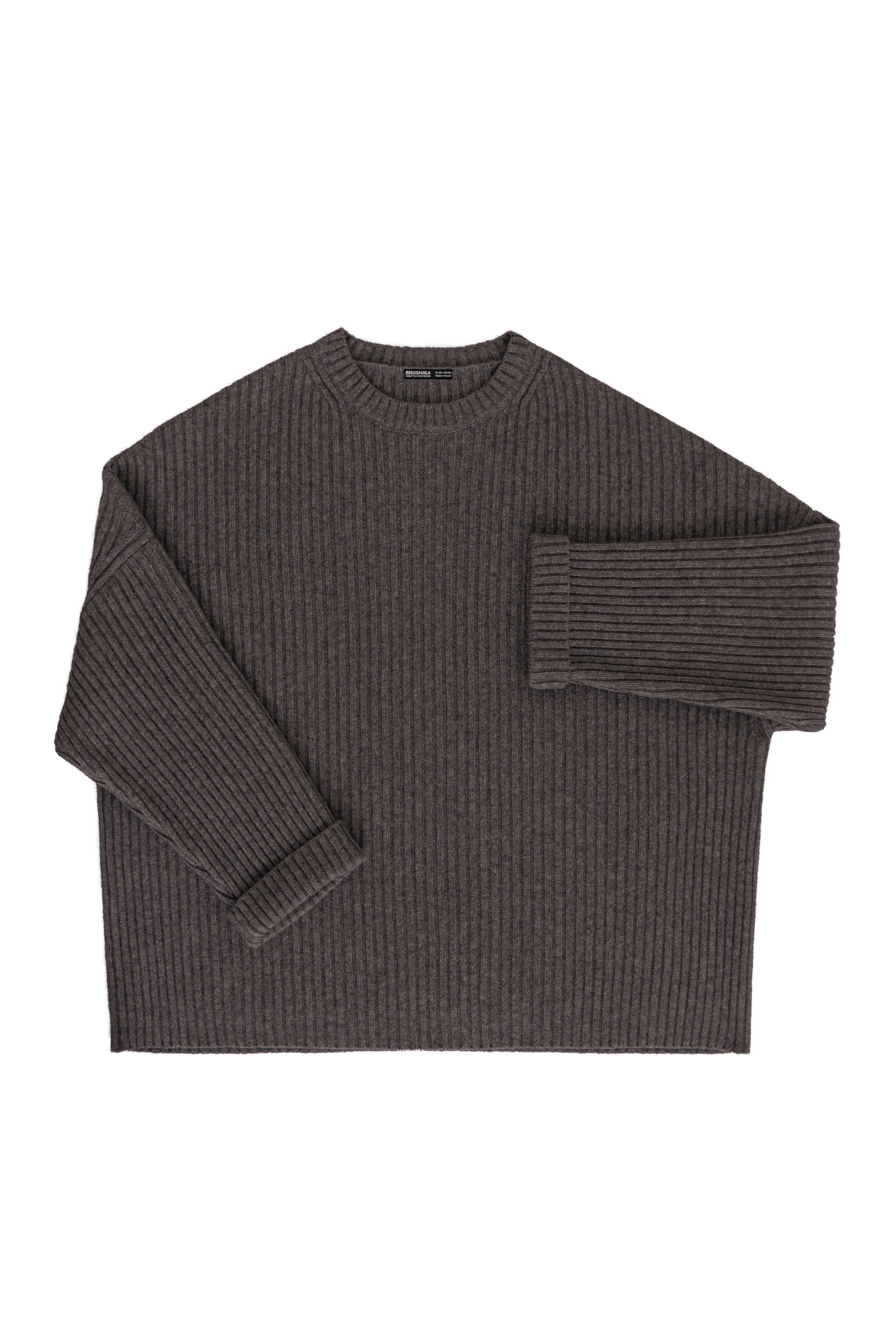 Трикотажный джемпер из шерсти с добавлением кашемира. Модель свободного силуэта со спущенной линией плеча и отворотом на манжетах.