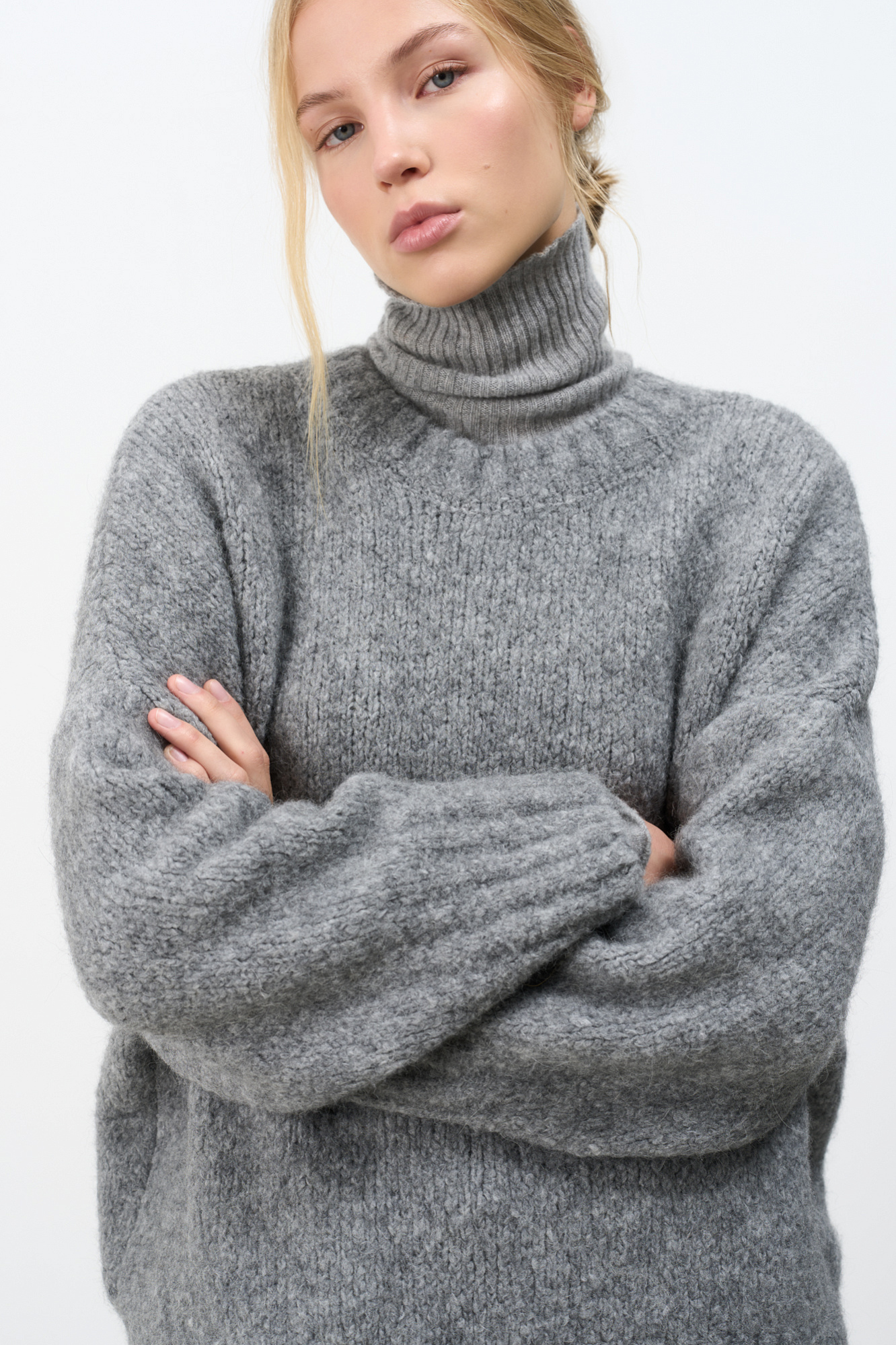 Трикотажный джемпер из шерсти альпака. Модель свободного силуэта со спущенной линией плеча. Края изделия в рубчик.