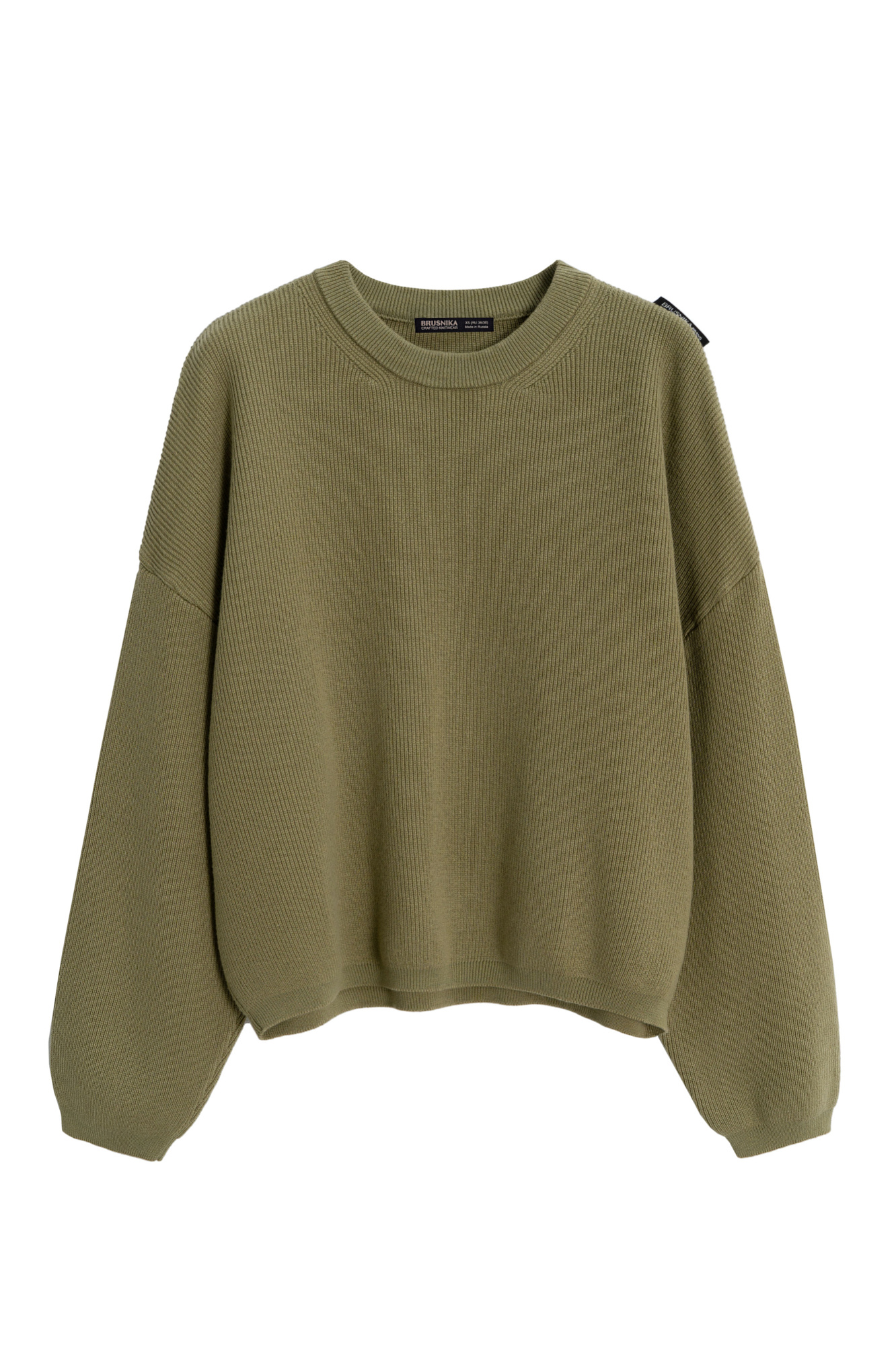 Укороченный трикотажный джемпер из хлопка с добавлением вискозы. Модель свободного кроя со спущенной линией плеч и круглым вырезом горловины.