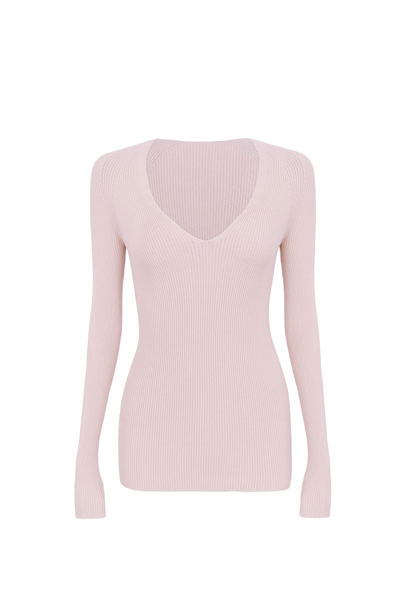 Трикотажный лонгслив из вискозы. Модель приталенного силуэта с глубоким V-образным вырезом. Изделие выполнено в рубчик.