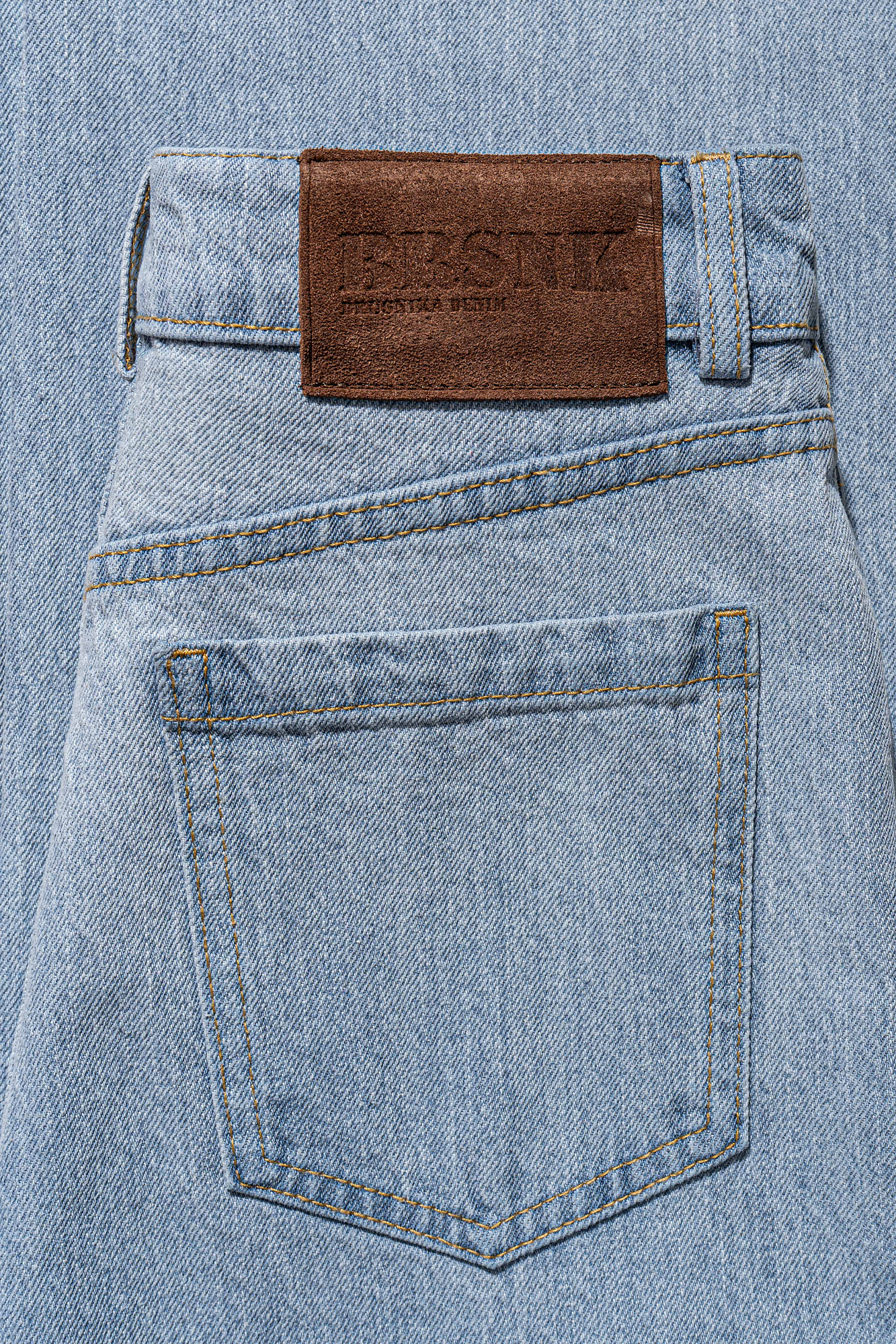 Джинсы из 100% хлопка. Модель прямого широкого кроя, с классической посадкой, пятью карманами, шлевками на поясе для ремня и застежкой на молнию и пуговицу. Эффект “мраморной” стирки по всей поверхности. Маленький карман с отделкой из коричневой экокожи.
