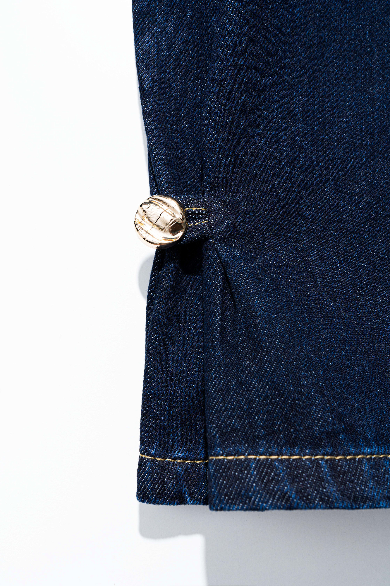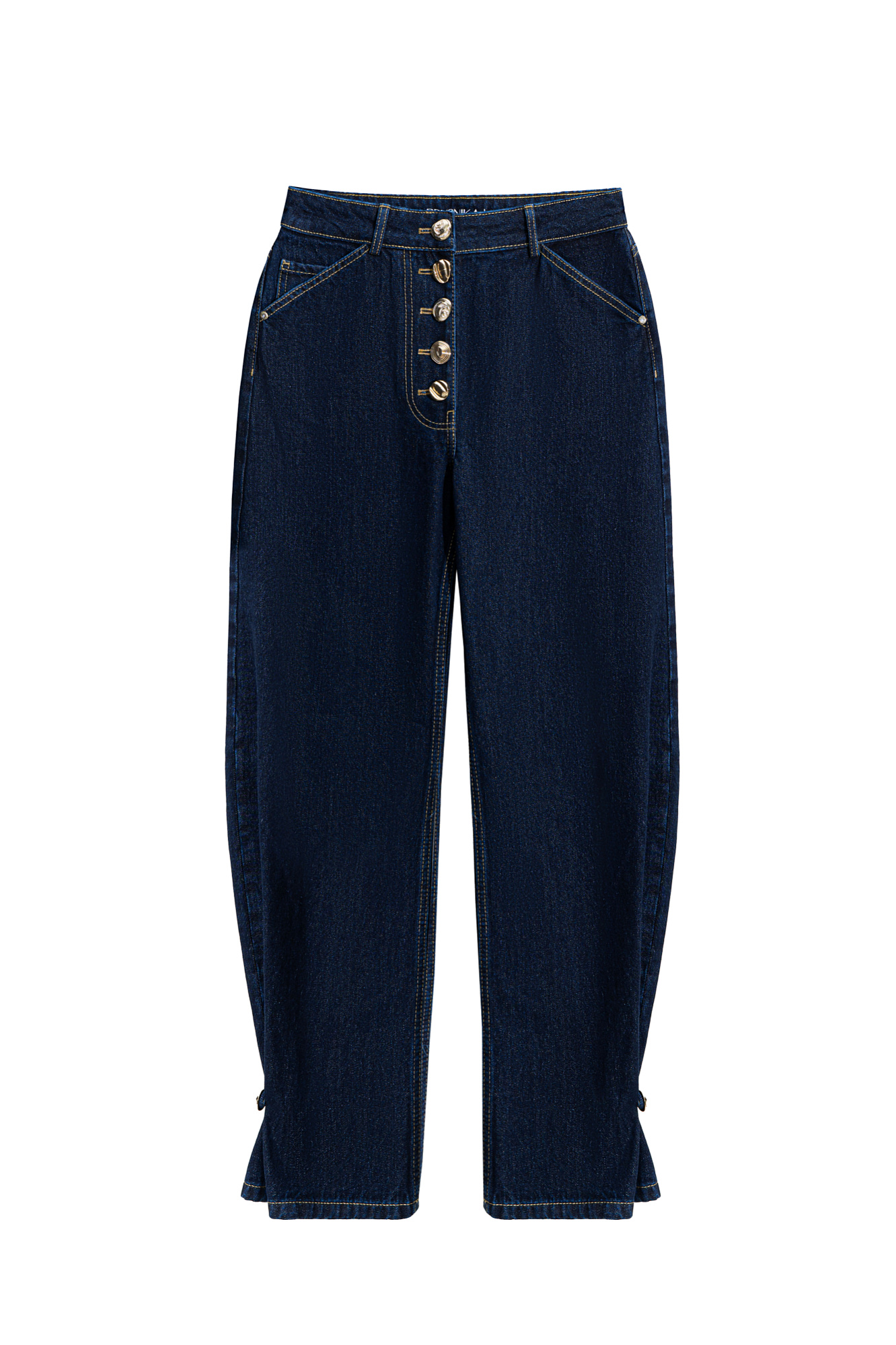 Джинсы Barrel fit из 100% хлопка. Модель с пятью карманами, застежкой на акцентные пуговицы и пуговицами внизу.