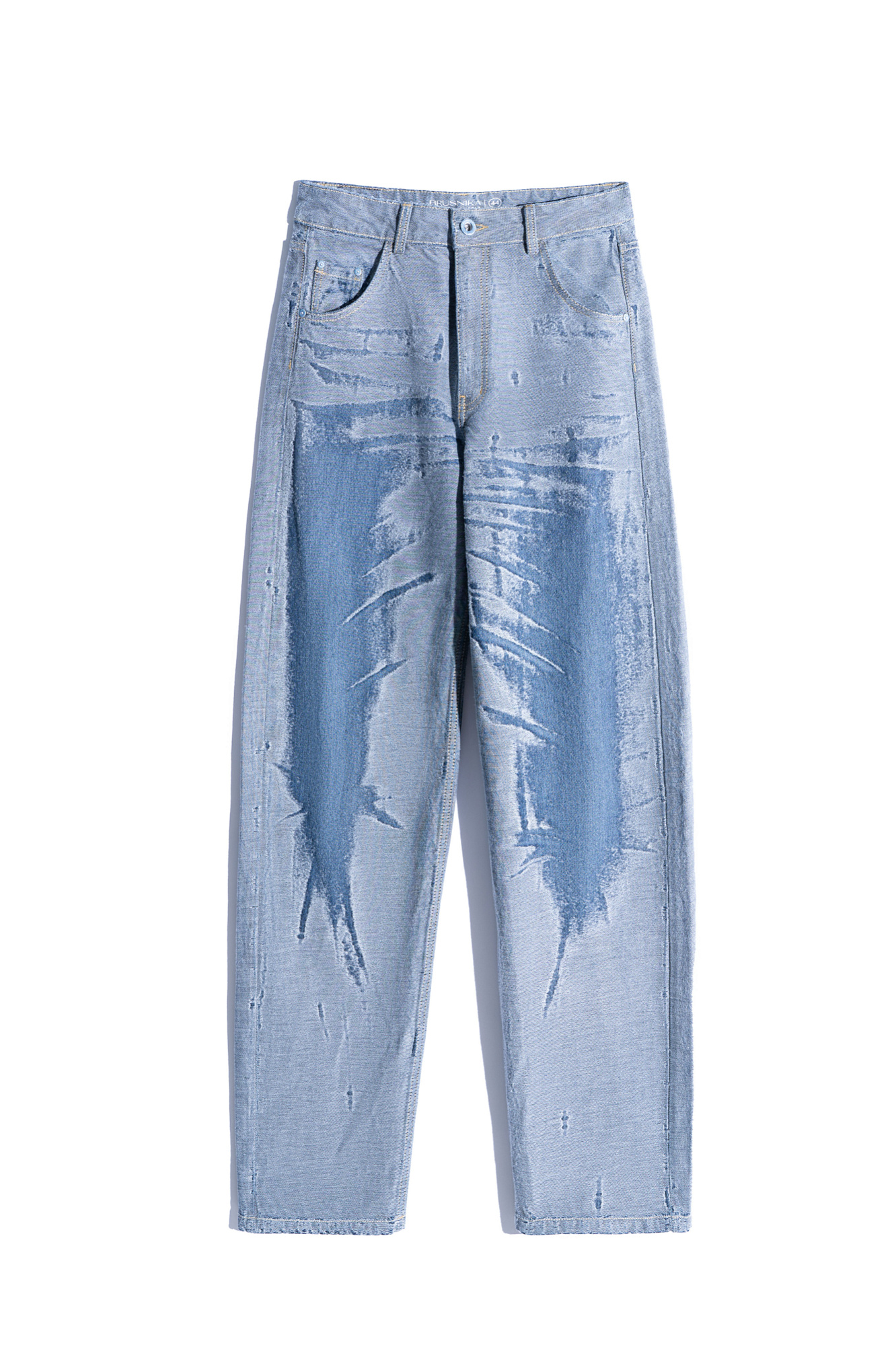 Джинсы из 100% хлопка в стиле гранж. Модель прямого кроя со шлевками на поясе для ремня, глубокими карманами спереди и карманами сзади.