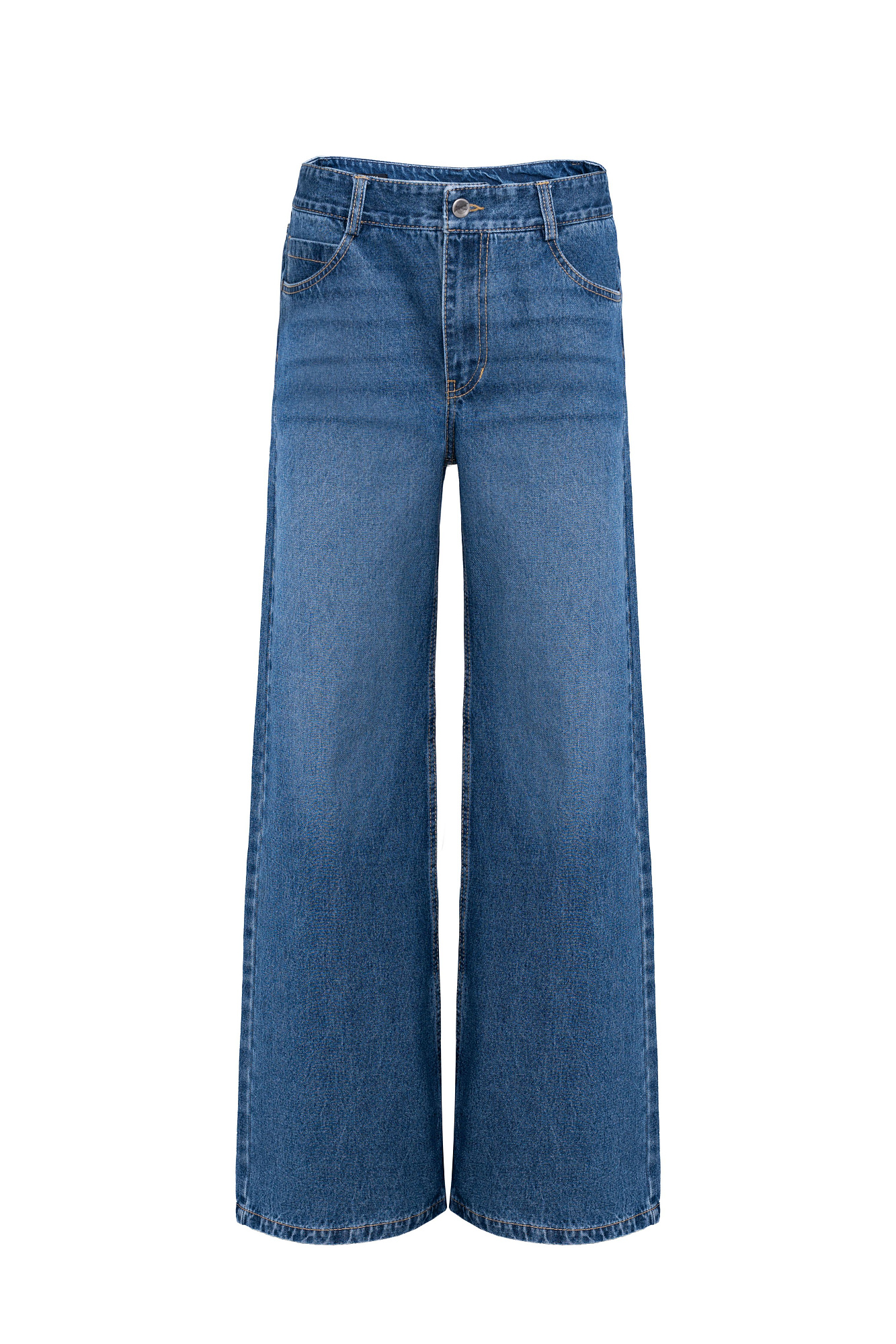 Прямые джинсы из 100% хлопка с боковыми карманами. Модель со средней посадкой и потайной застежкой на молнию и пуговицу.