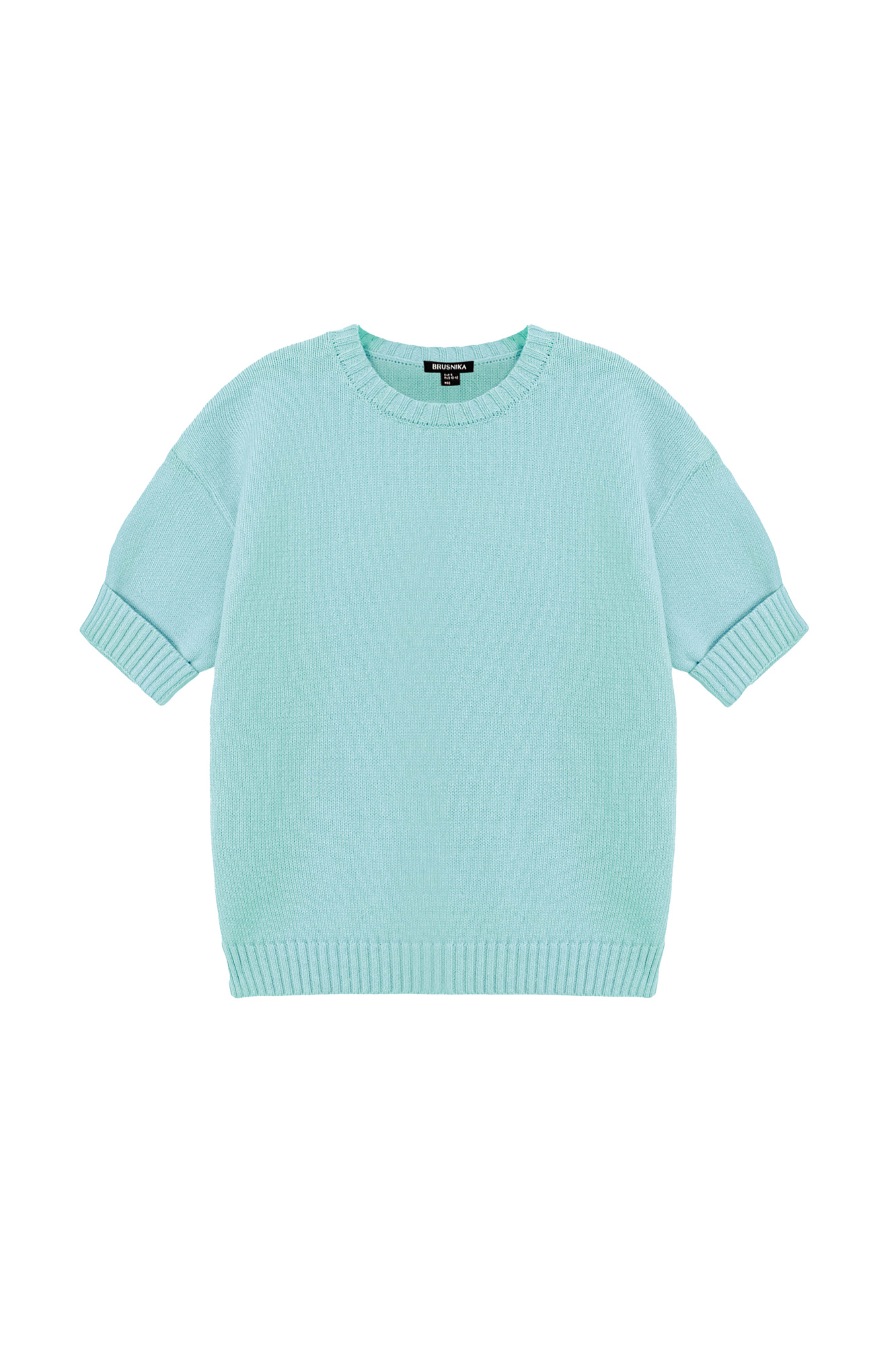 Трикотажная футболка из хлопка. Рукава с небольшим подворотом и низ изделия в рубчик.