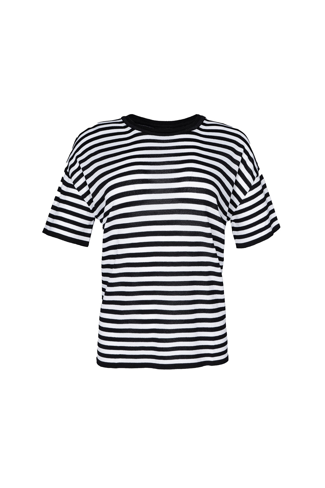 Трикотажная футболка из вискозы. Модель прямого кроя с коротким рукавом и круглым вырезом горловины.