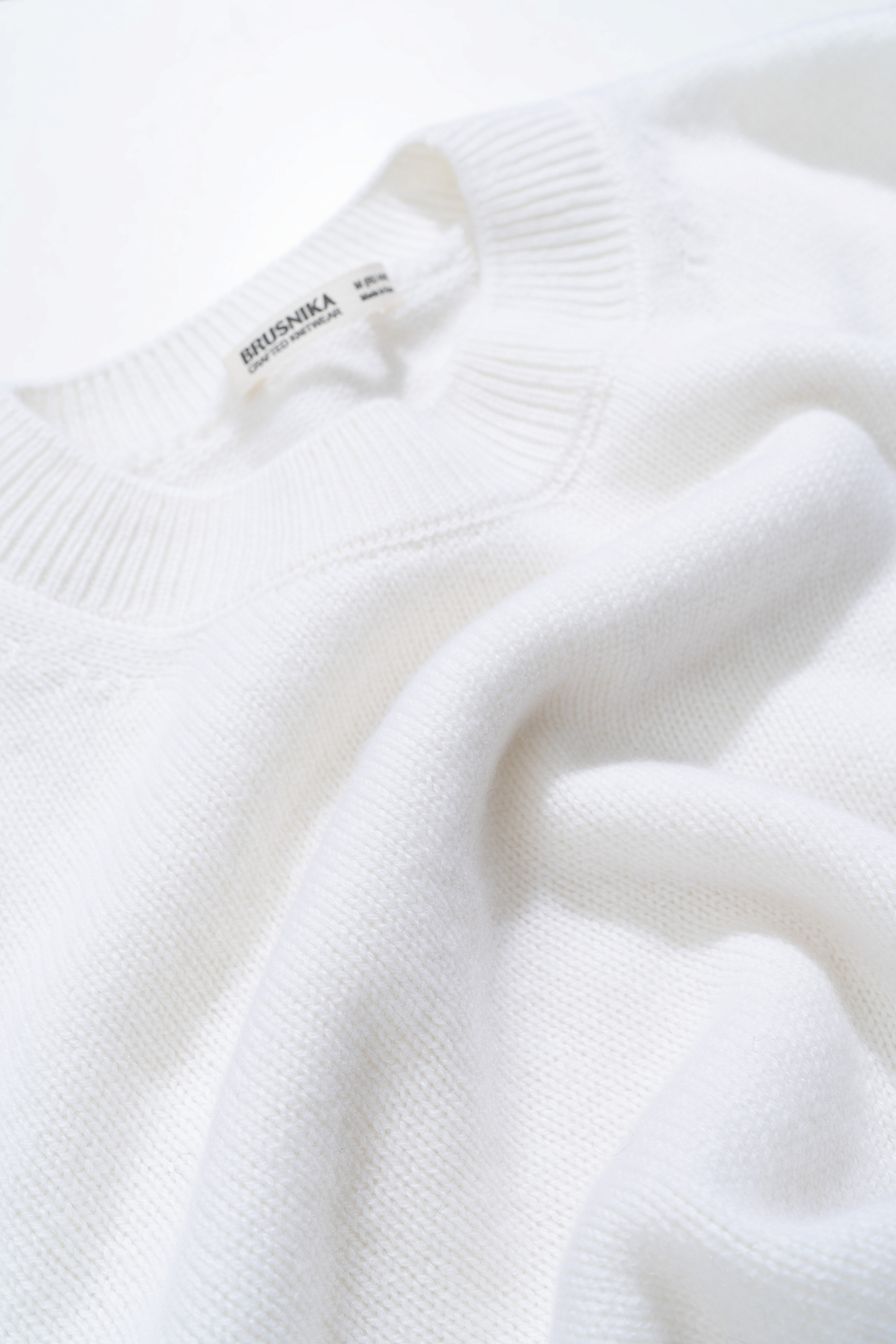 Трикотажная футболка из 100% кашемира. Модель свободного силуэта, с коротким рукавом и круглым вырезом горловины. Края изделия выполнены в рубчик.