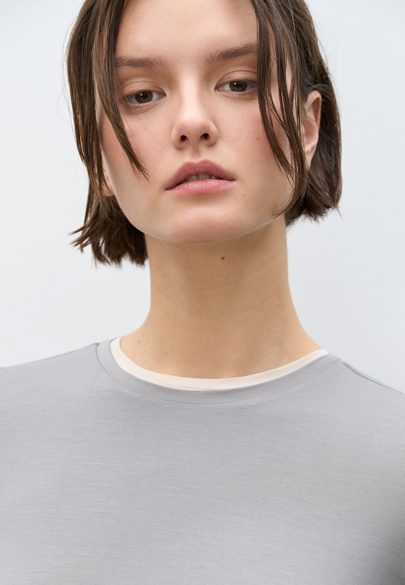 Футболка из модала облегающего силуэта. Модель с коротким рукавом и круглым вырезом горловины.