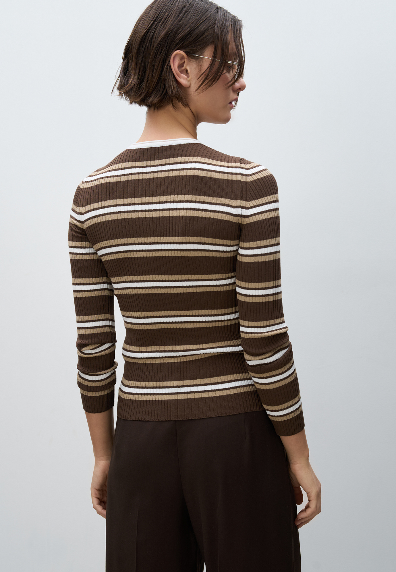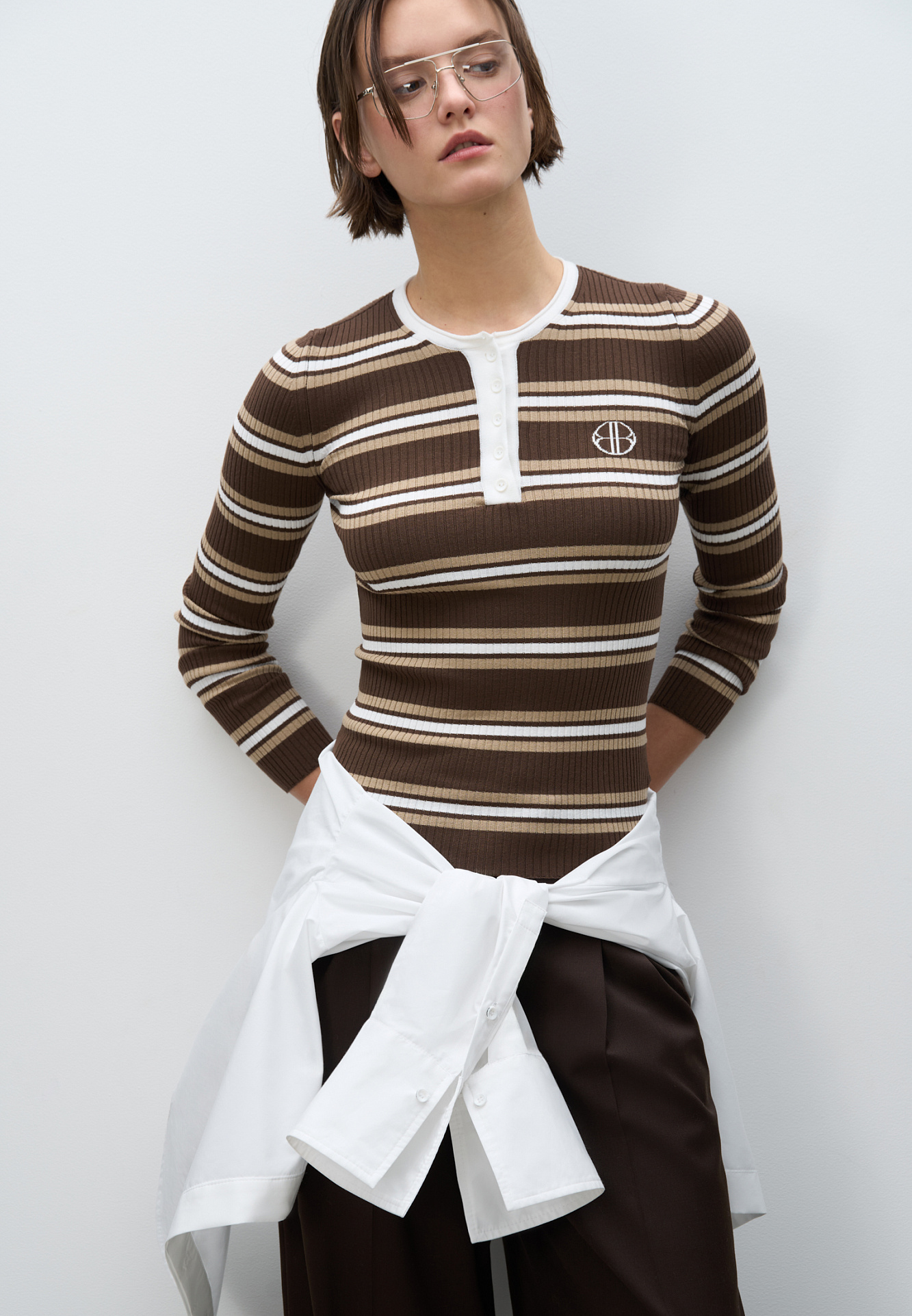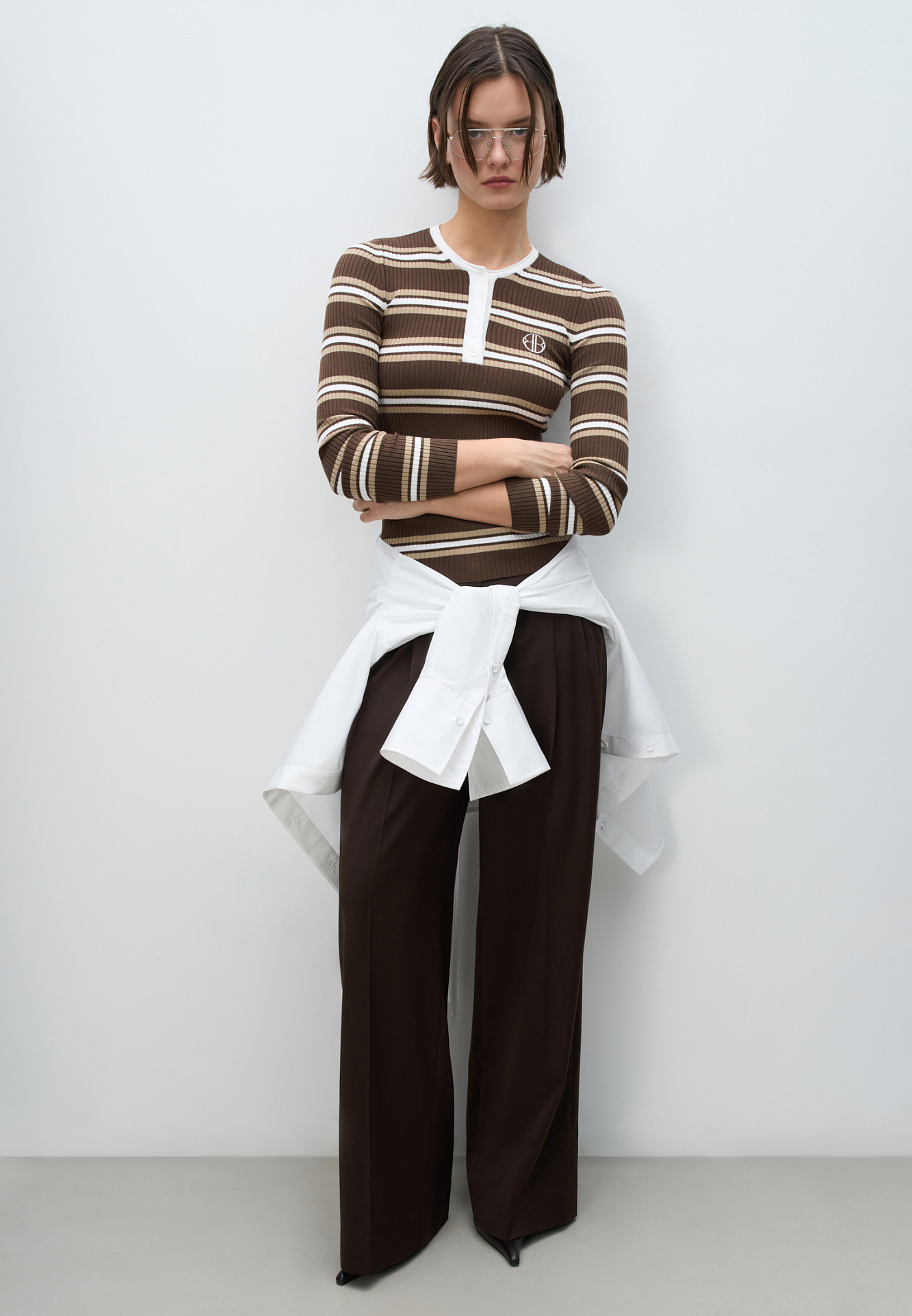 Трикотажный лонгслив из вискозы. Модель с круглым вырезом горловины с планкой на пуговицах и брендированным ярлыком на груди.