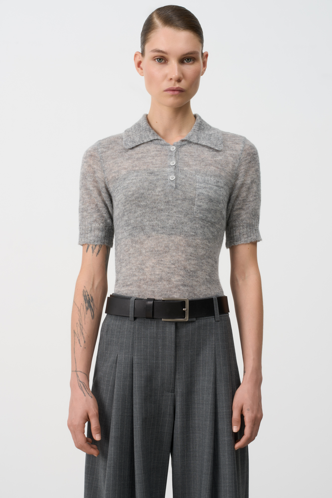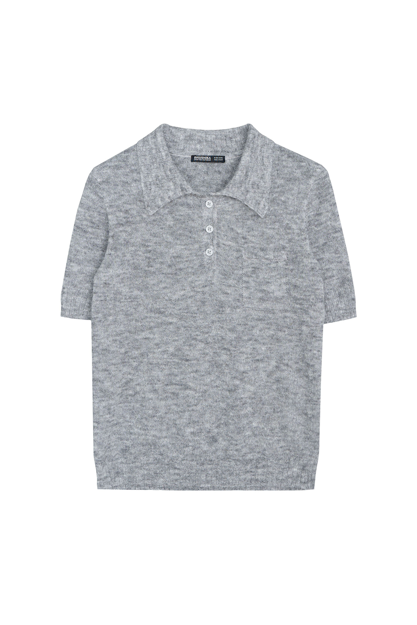 Трикотажная футболка из шерсти мериноса и альпака. Модель прямого силуэта с воротником-поло на пуговицах. Края изделия выполнены в рубчик.