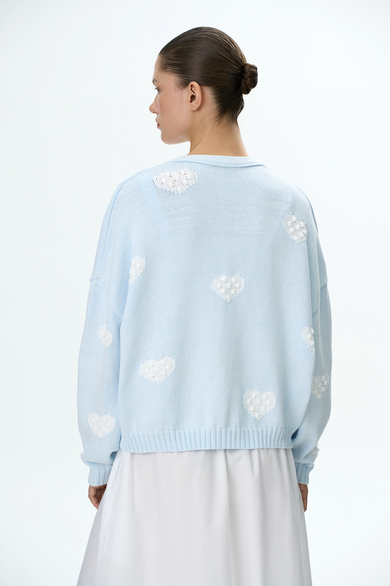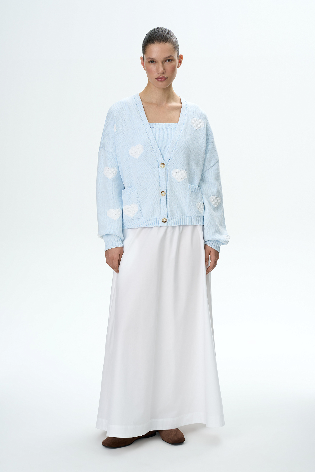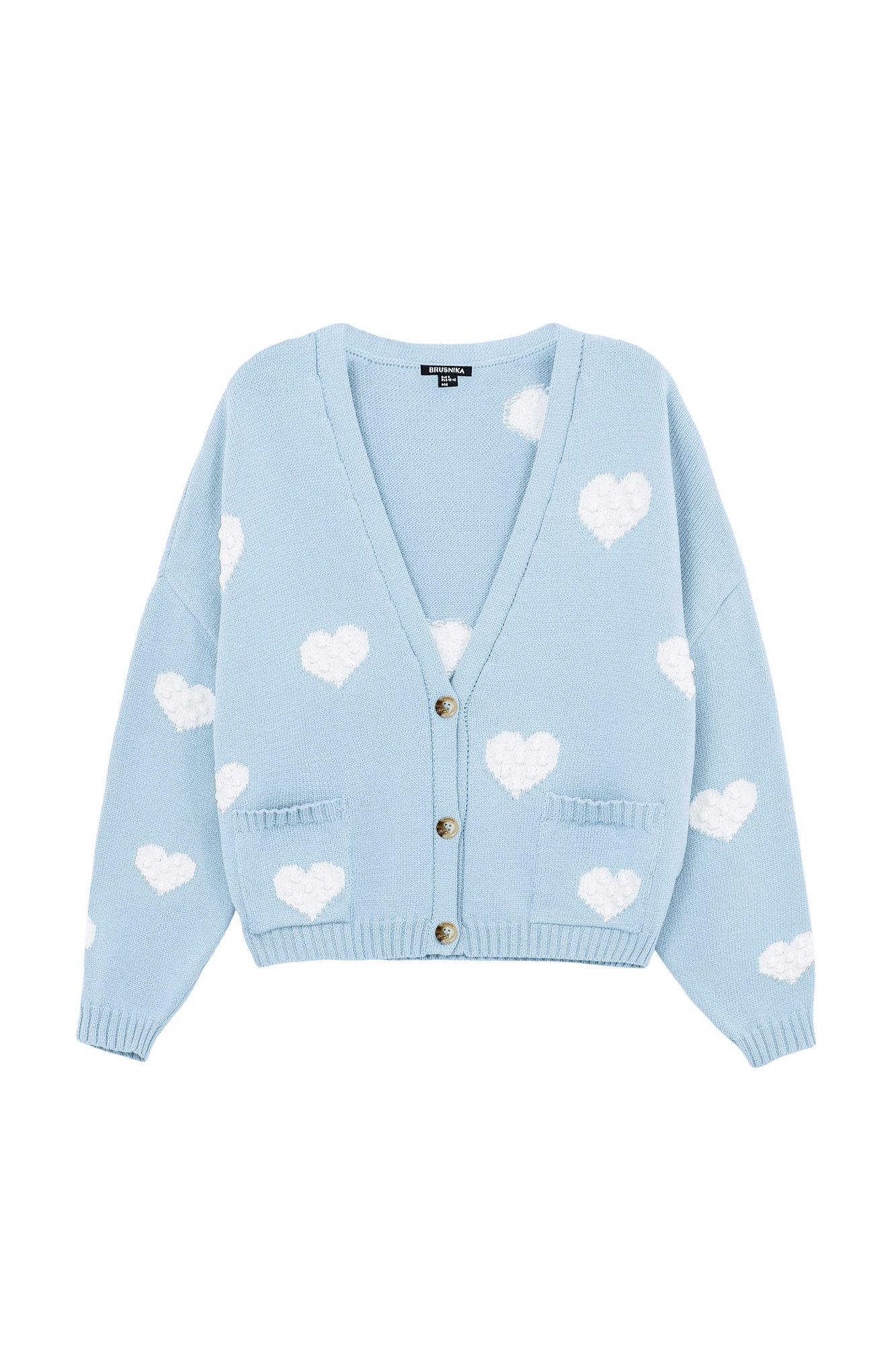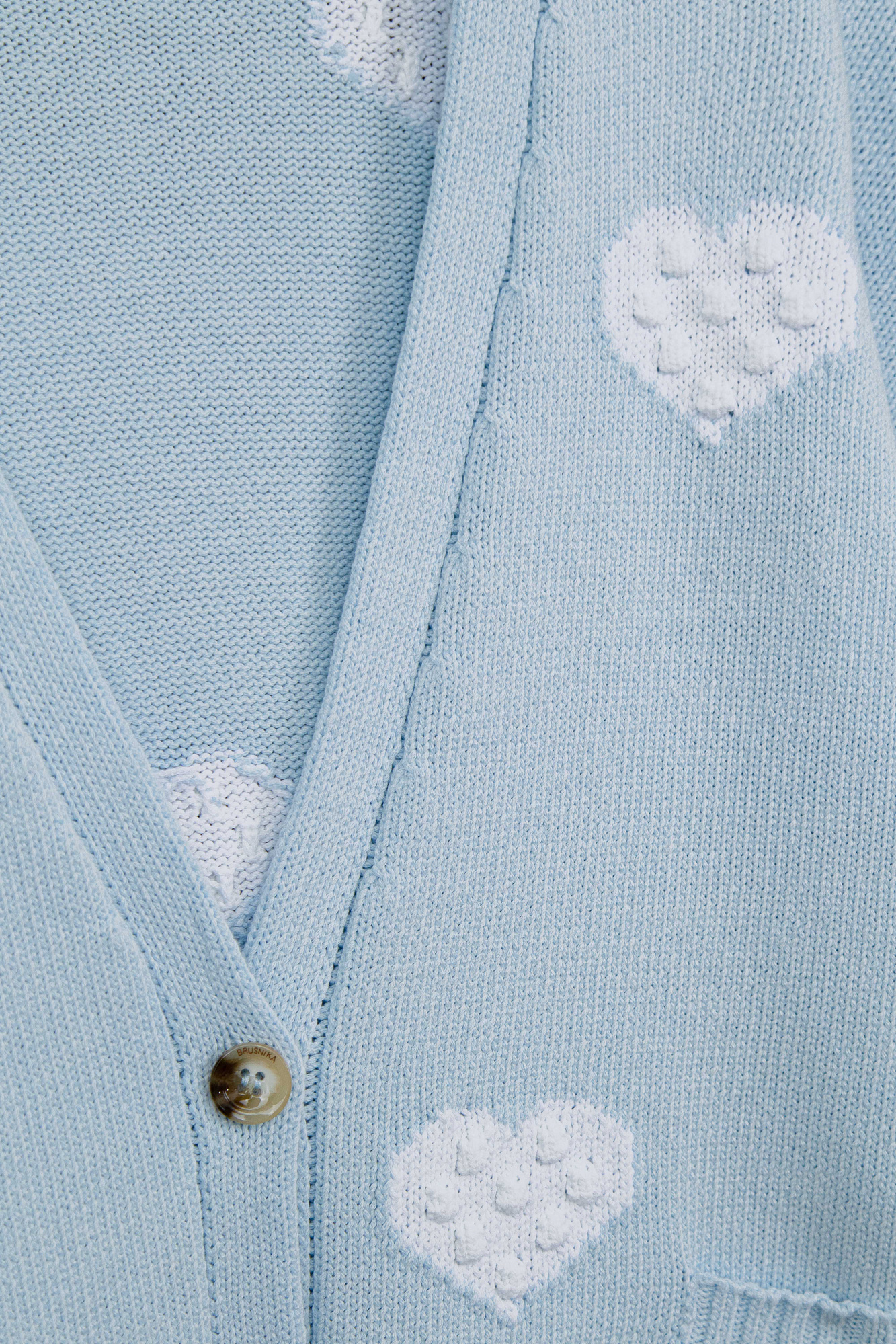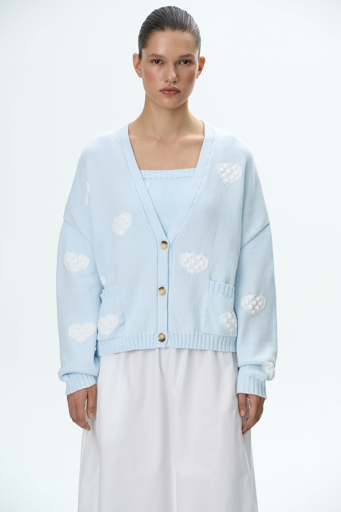 Кардиган из хлопка с фактурными сердцами. Застежка на 3 пуговицы. Регулируемые манжеты.