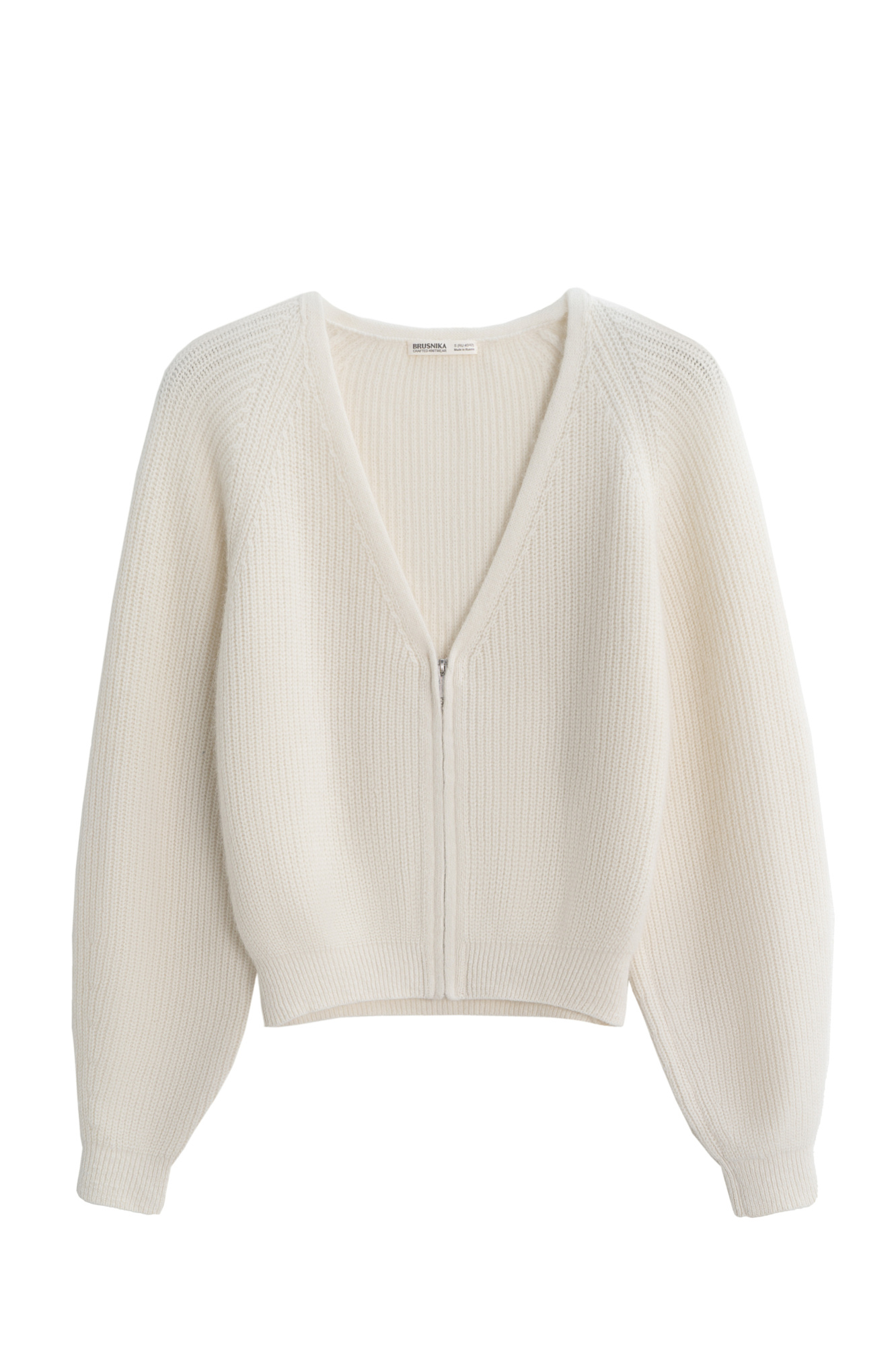Укороченный кардиган на молнии с V-образным вырезом. Содержание в пряже 40% натурального пуха лисы делает изделие теплым, мягким и в тоже время очень легким.
