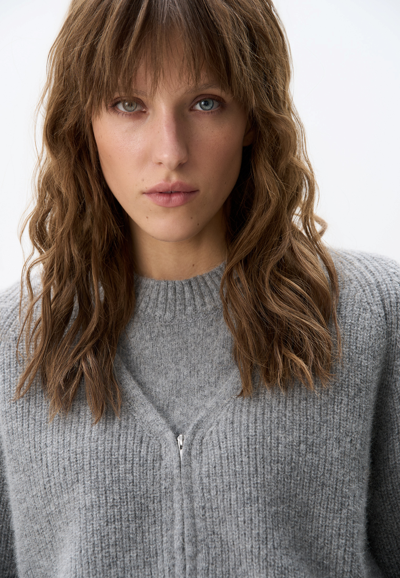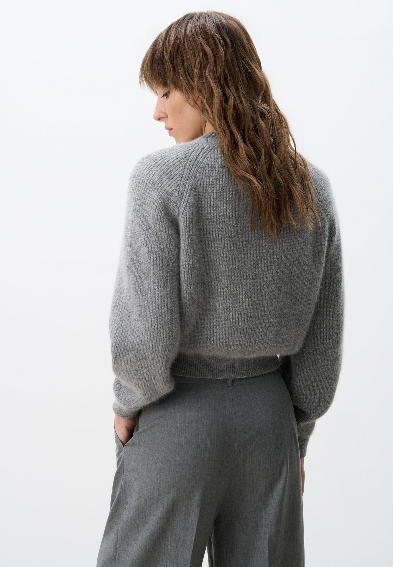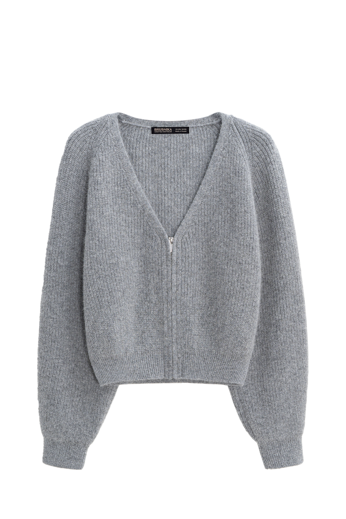 Укороченный кардиган на молнии с V-образным вырезом. Содержание в пряже 40% натурального пуха лисы делает изделие теплым, мягким и в тоже время очень легким.