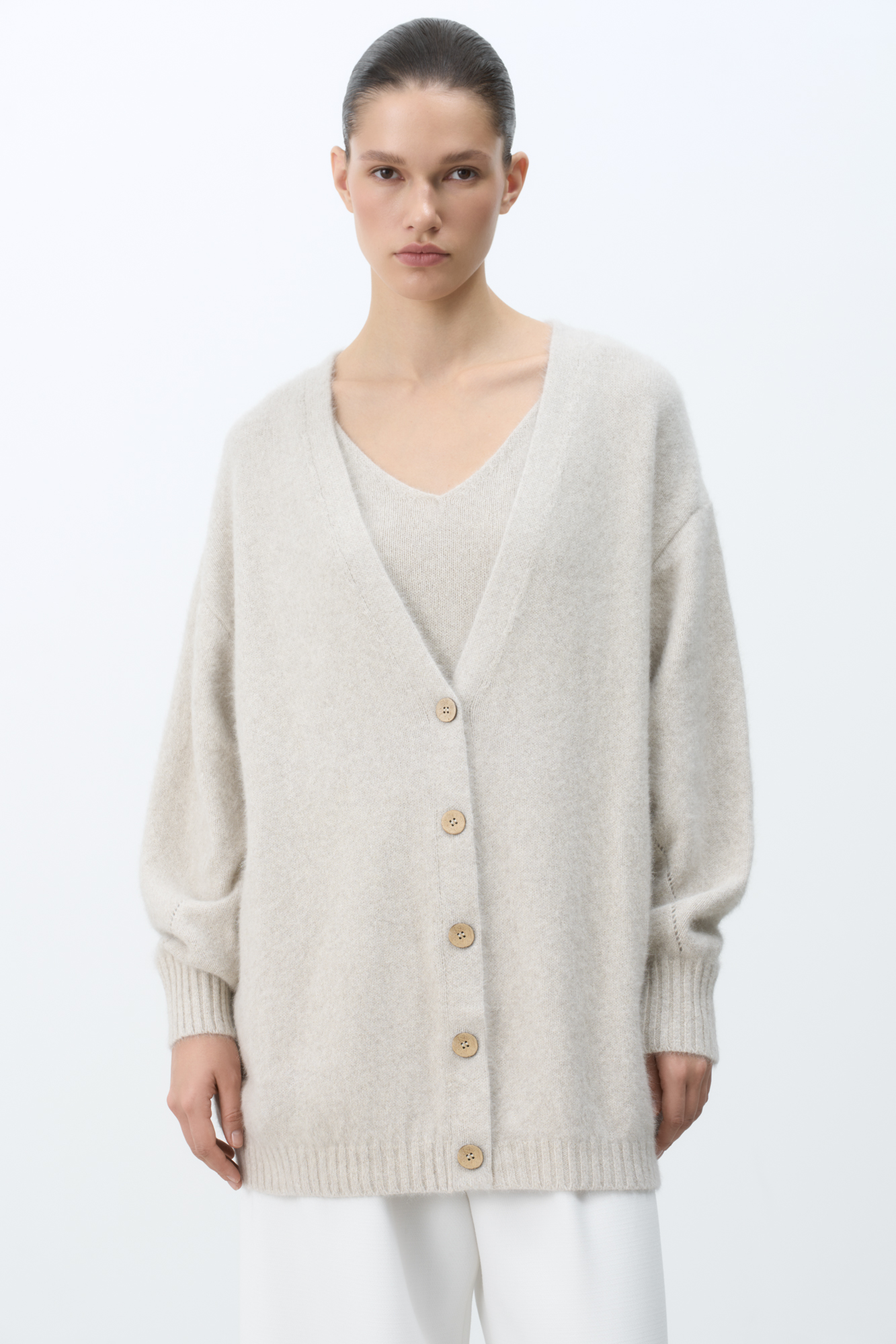 Кардиган из натурального пуха лисы. Содержание в пряже 70% натурального пуха лисы делает кардиган теплым и в тоже время очень легким и мягким.