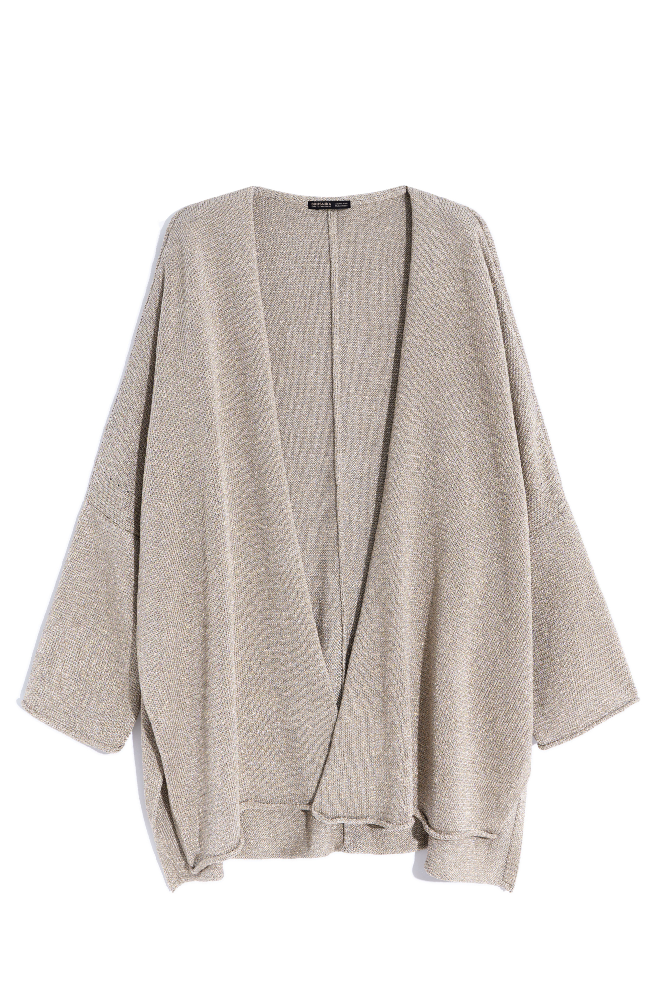 Трикотажный кардиган с люрексом. Модель свободного кроя, с длинными широкими рукавами и спущенной линией плеч. Без застежки.