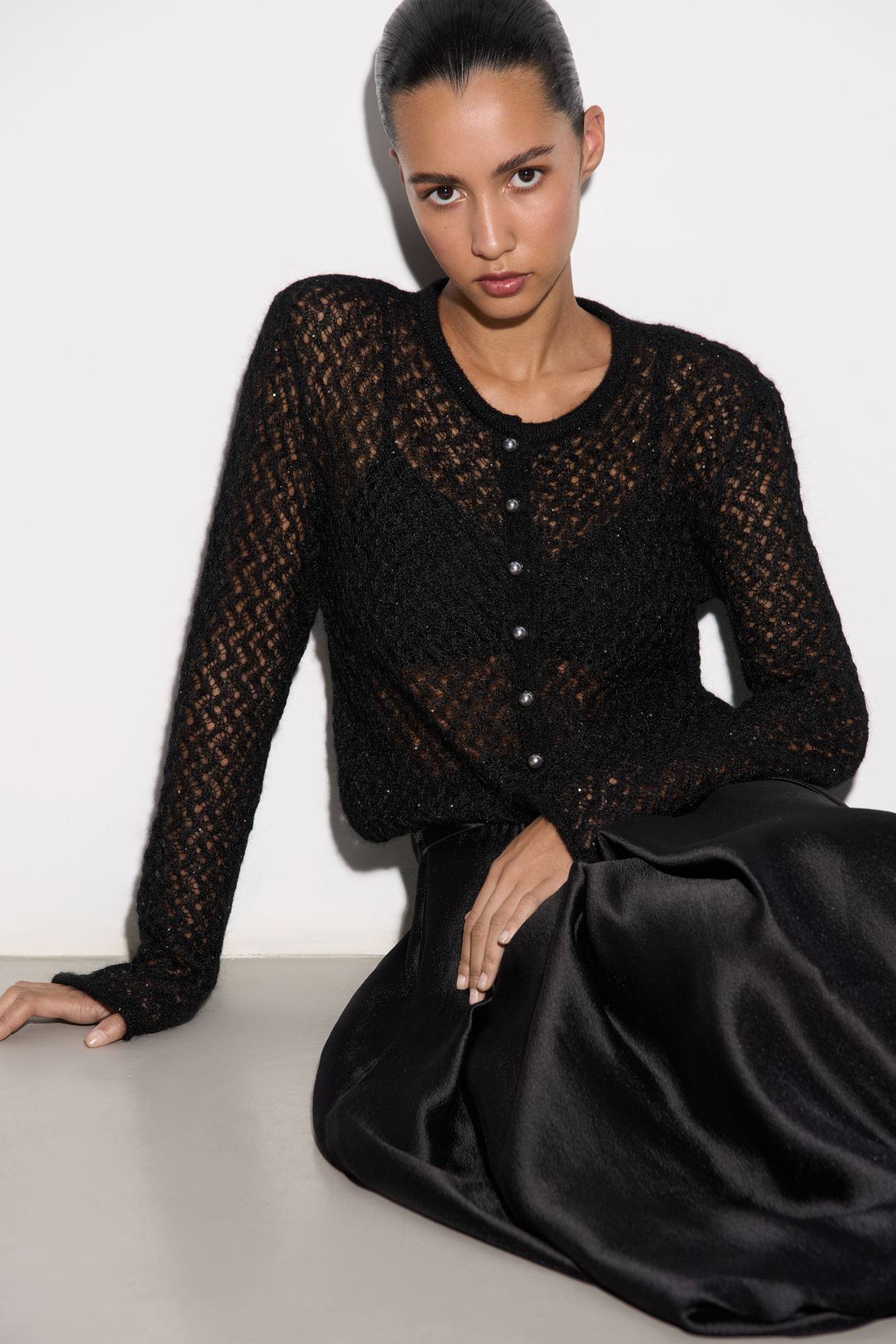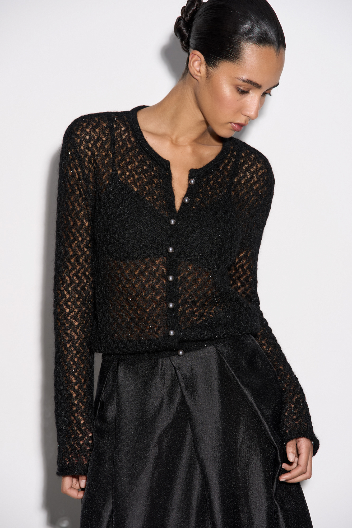 Ажурный кардиган с пайетками