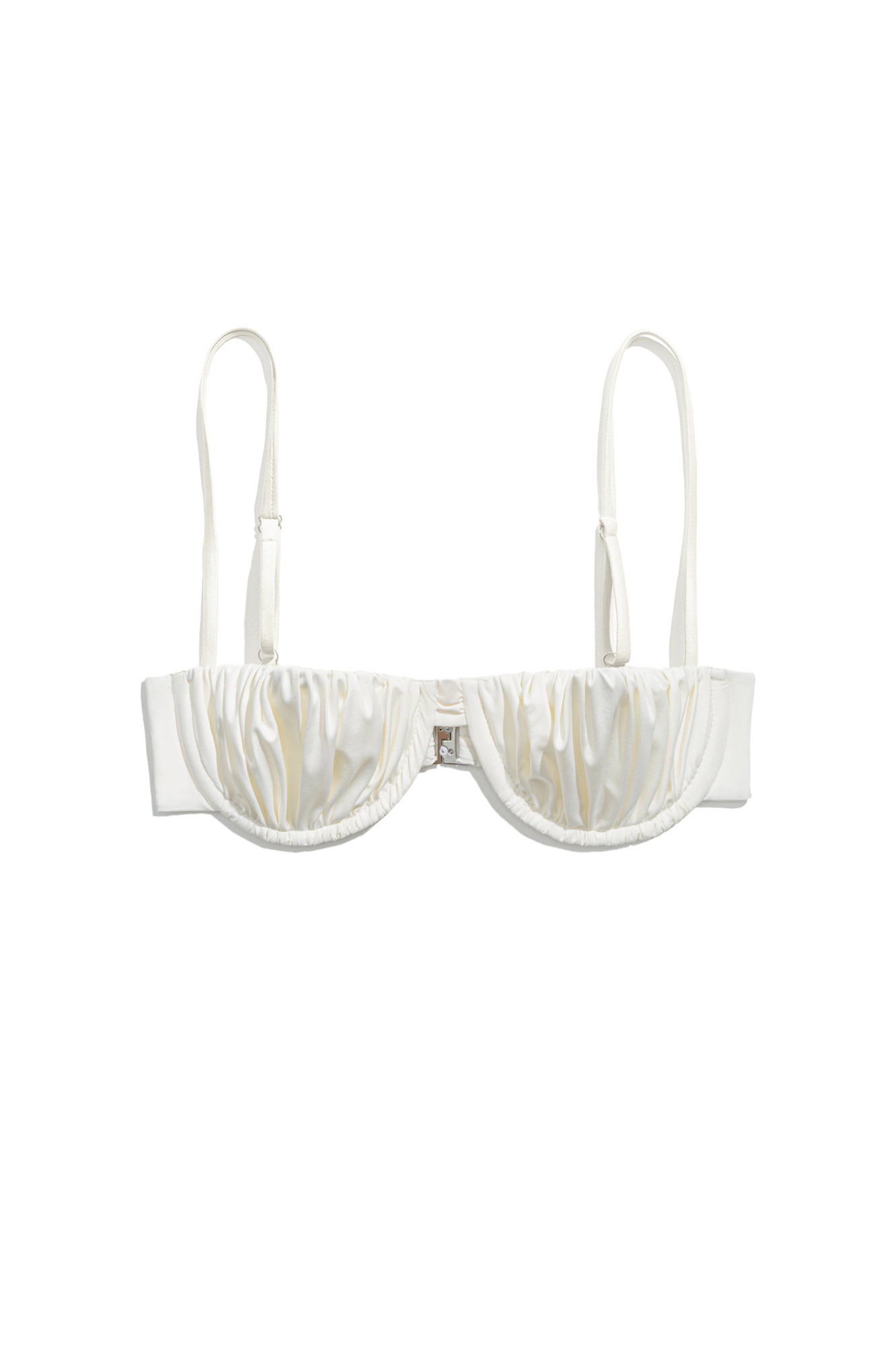 Лиф купальника с формованными чашками с драпировкой. Модель на тонких регулируемых бретелях и застежкой сзади.