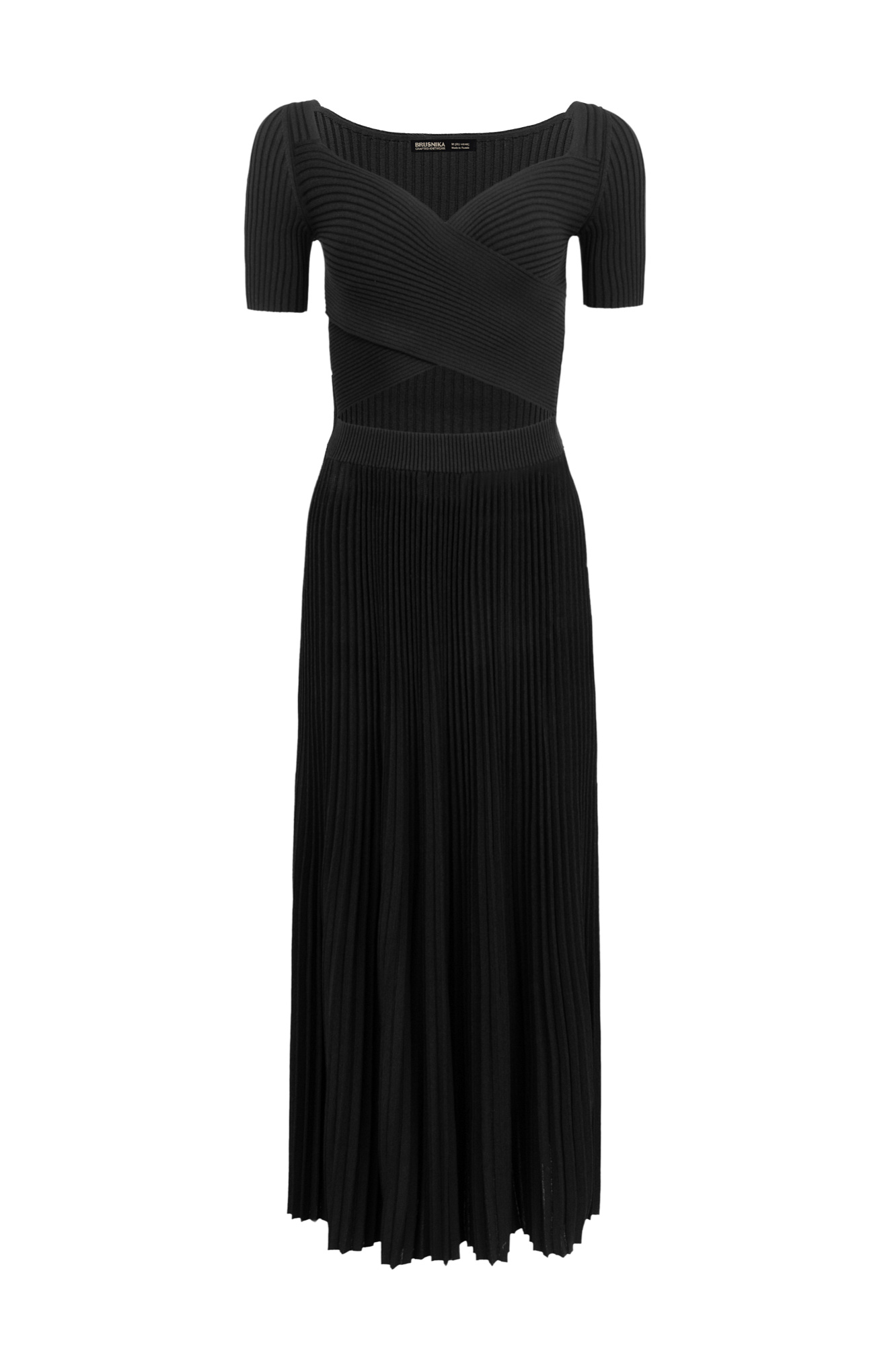 Трикотажное платье длины макси, выполненное из плотной вискозы. Модель с короткими рукавами, юбкой плиссе и вывязанным лифом.