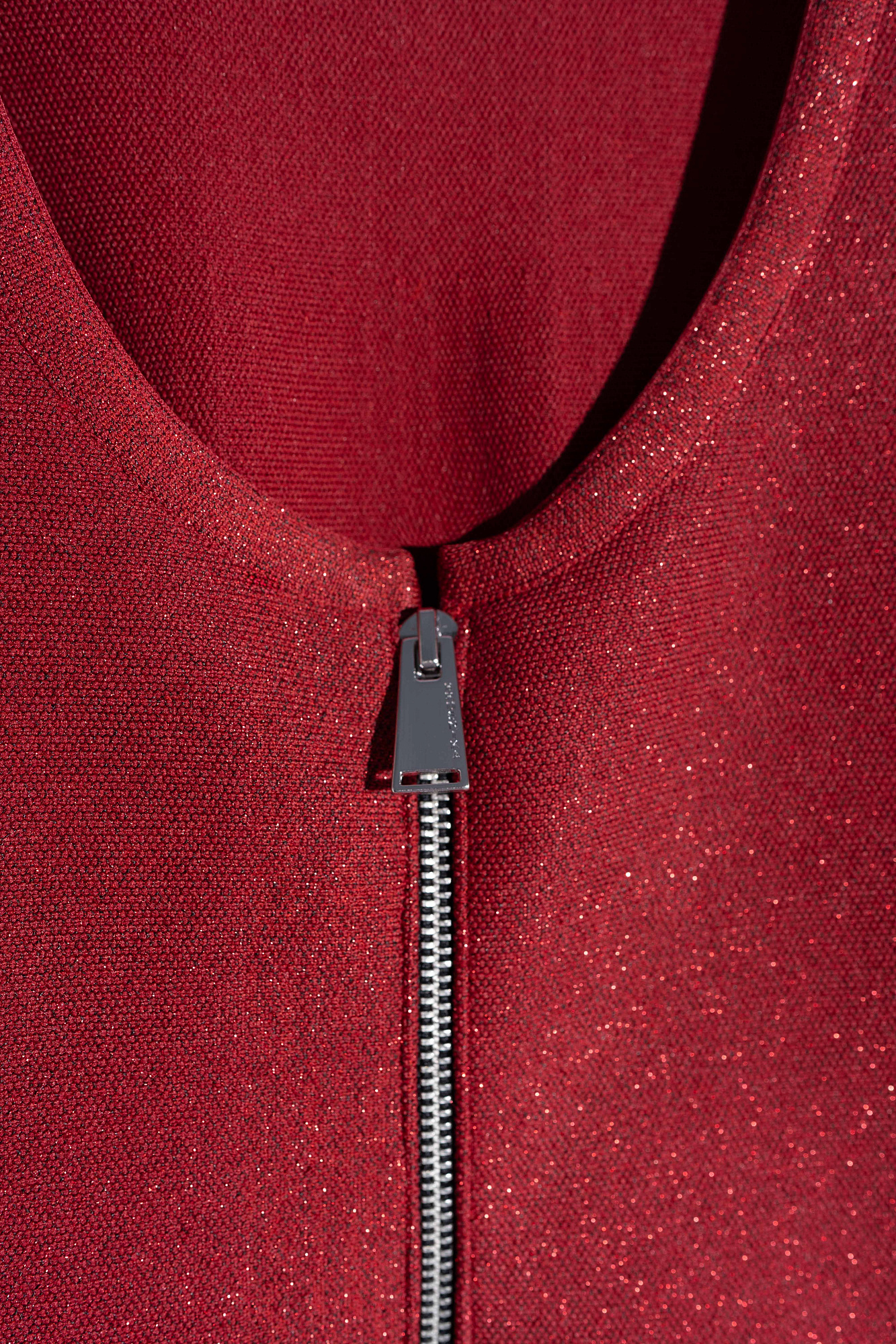 Трикотажное платье длины миди с люрексом. Модель по фигуре с юбкой, расклешенной от талии, без рукавов, на широких бретельках.