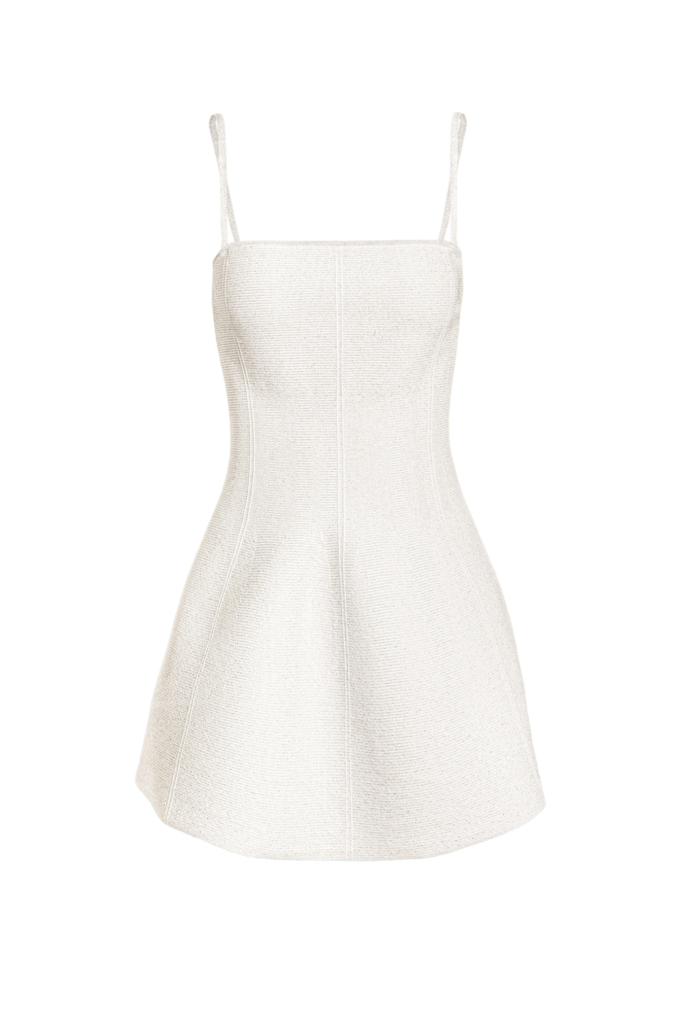 Трикотажное платье длины мини с люрексом. Модель приталенного силуэта на бретелях. Бретели снимаются. Застежка на молнию.