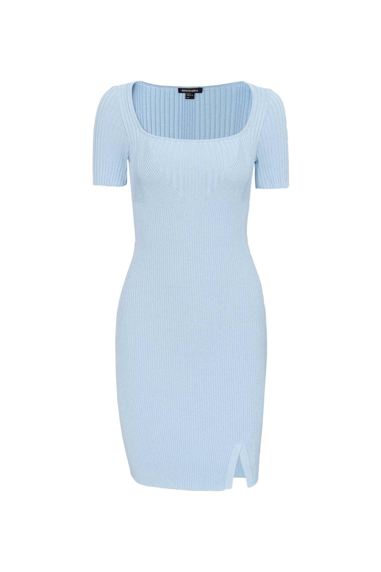 Трикотажное платье из вискозы с квадратным вырезом и небольшим разрезом на бедре.
