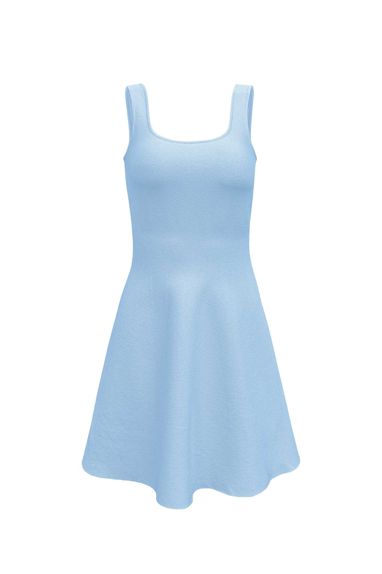 Трикотажное мини платье в стиле baby doll на широких бретелях. Круглый вырез, застежка сзади на молнию. Платье связано из плотной эластичной вискозы, что позволяет прилегать по фигуре и держать объем у юбки.