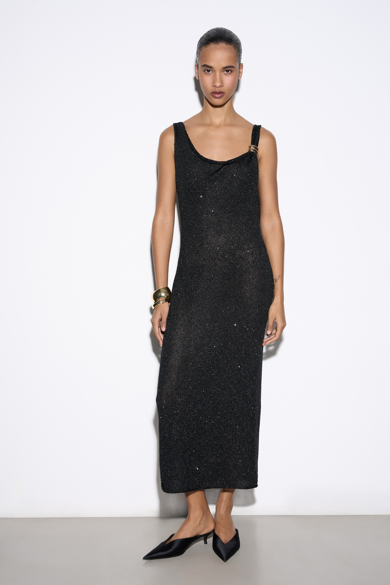 Платье с пайетками на бретельках