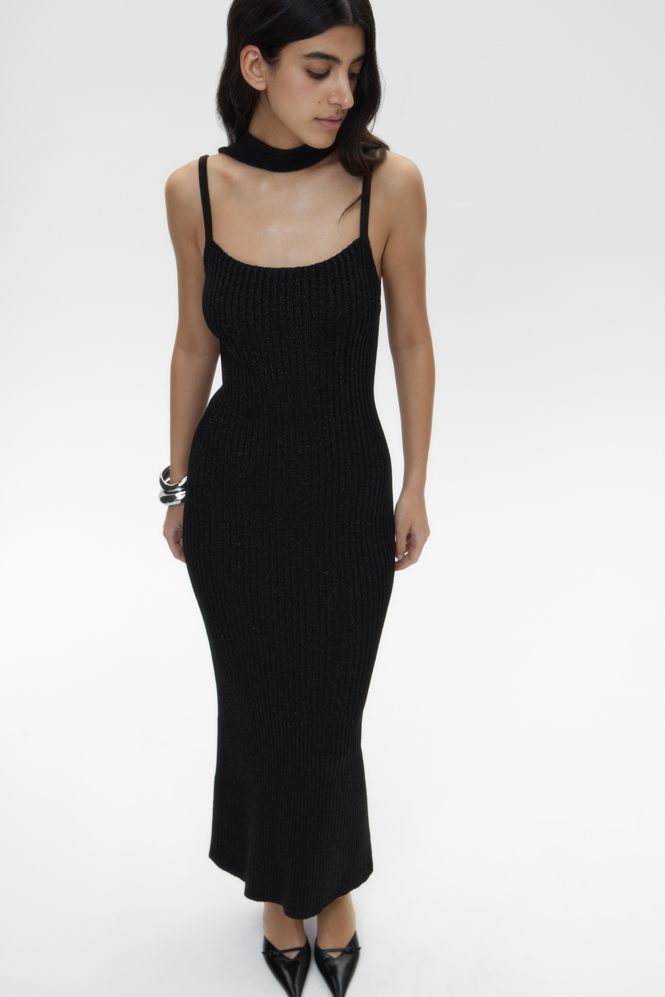 Трикотажное платье миди с люрексом