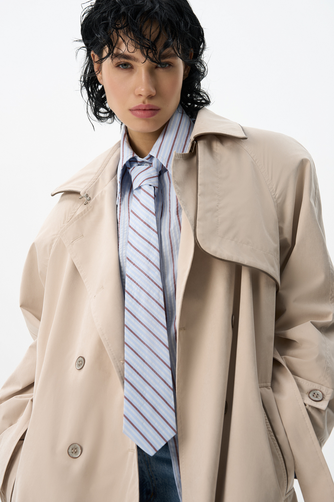 Рубашка из 100% хлопка с галстуком. Модель прямого кроя с длинными рукавами с манжетами, классическим отложным воротником, подплечниками и завязкой на спинке. Застежка на пуговицы под планкой.