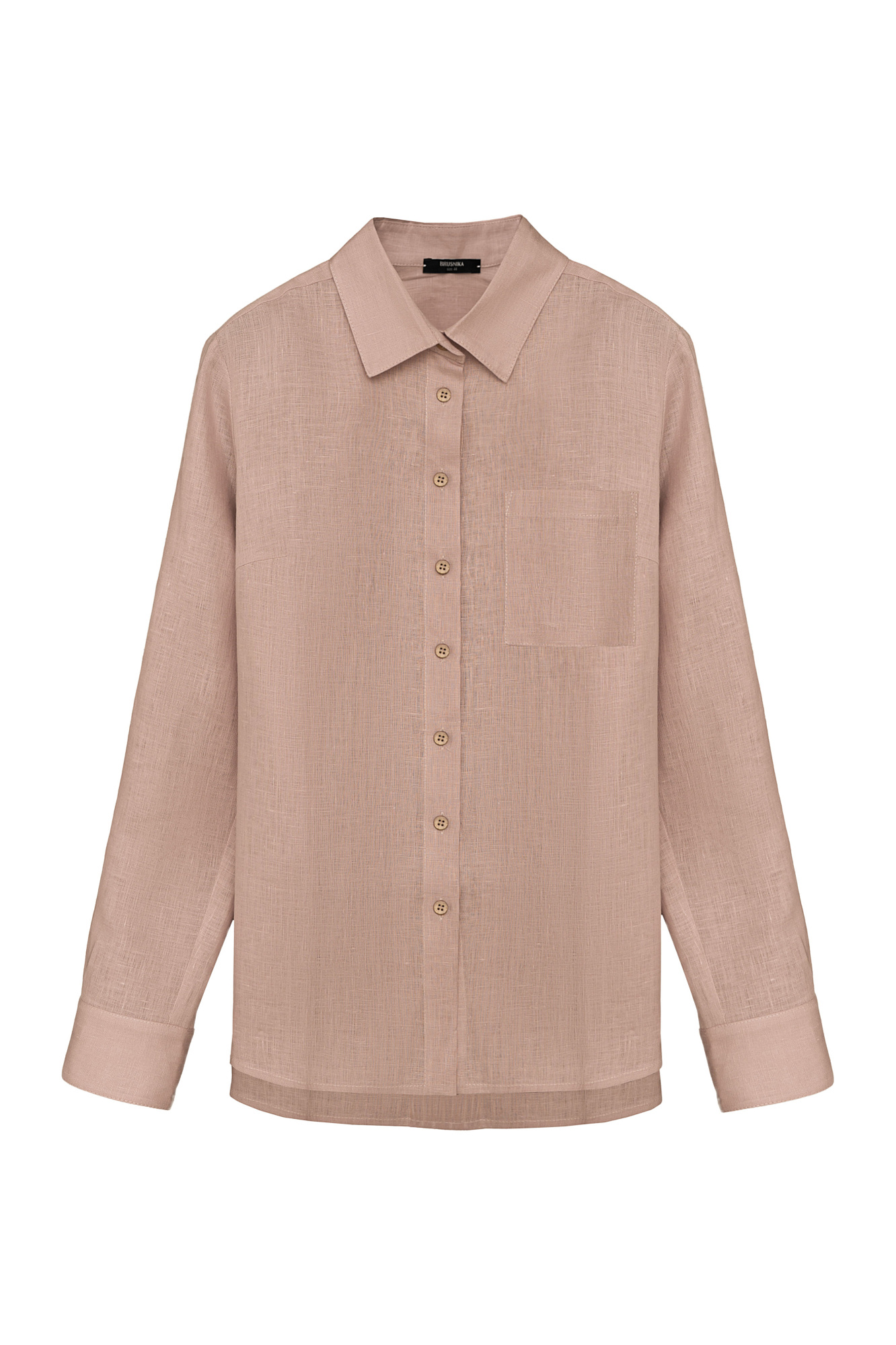 Классическая рубашка из 100% льна на пуговицах. Модель свободного кроя с накладным карманом на груди.